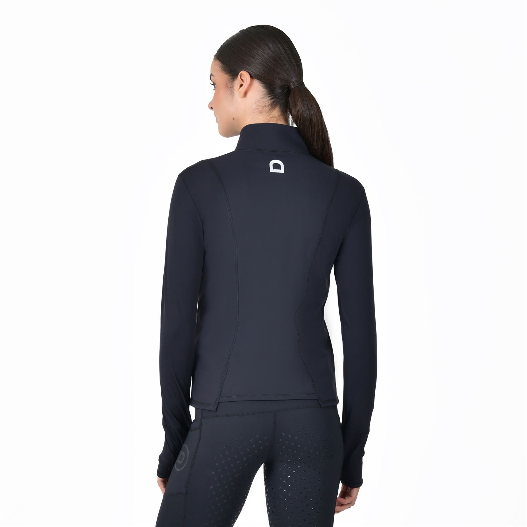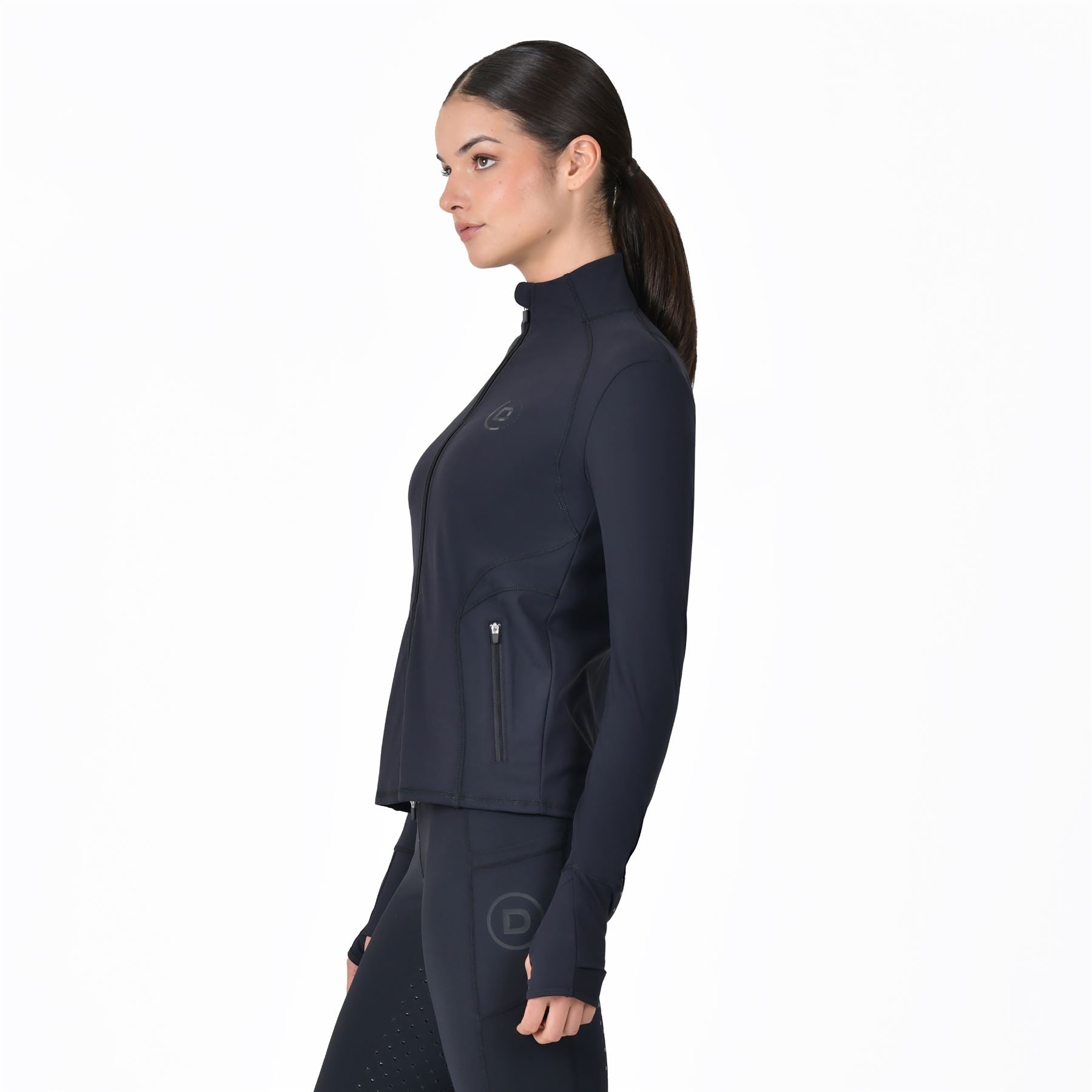 The Dublin Versatile Fitted Zip Through Jacket is the ultimate blend of functionality and style for equestrian enthusiasts. Crafted from a soft-touch, multi-way stretch fabric, it offers unparalleled comfort and flexibility, moving seamlessly with you whether you're saddling up for a ride or tackling tasks on foot. Designed with thoughtful details, like a wristwatch opening for quick access without adjusting your sleeves, thumbholes to keep the chill at bay, and a flattering fitted cut, this jacket ensures you look and feel your best whatever the weather. A two-way front zipper adds ease and comfort when riding, while secure zippered side pockets keep your essentials in place. Finished with the subtle reflective Dublin 'D' branding on the back, this lightweight jacket will elevate your equestrian wardrobe with practical sophistication.