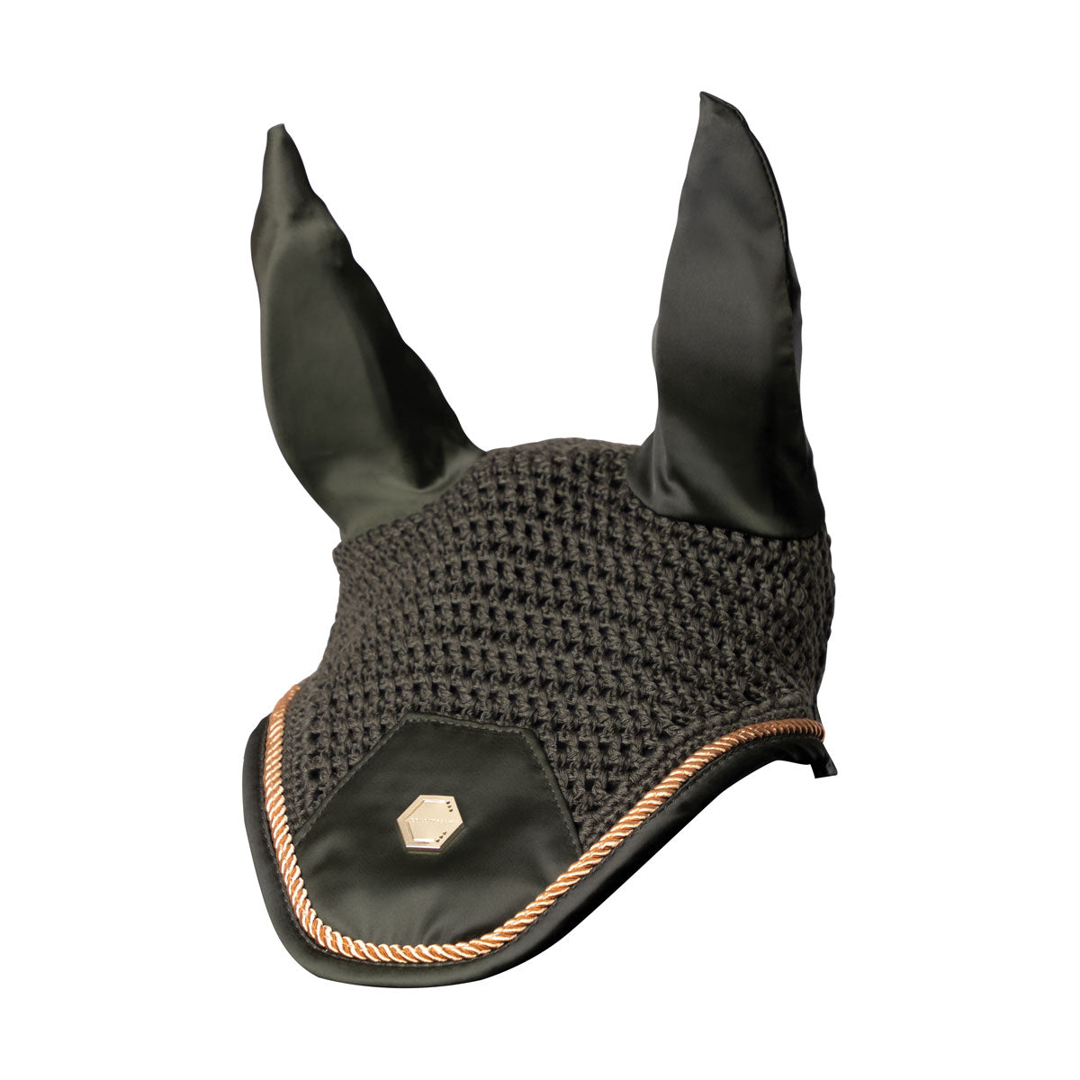 The gorgeous Marygold Fly Veils are engineered with performance and style in mind, designed using a close-knit crochet to optimise fit, comfort and breathability. The smooth silk ears create a luxurious appearance, whilst helping to prevent bugs and insects from irritating your horse and help dull noise pollution allowing for a better focus. Elegantly finished with delicate golden braiding and logo pin detailing on a silk background. Co-ordinate with the matching Marygold horse wear and Ednam rider wear for a fashionable look.