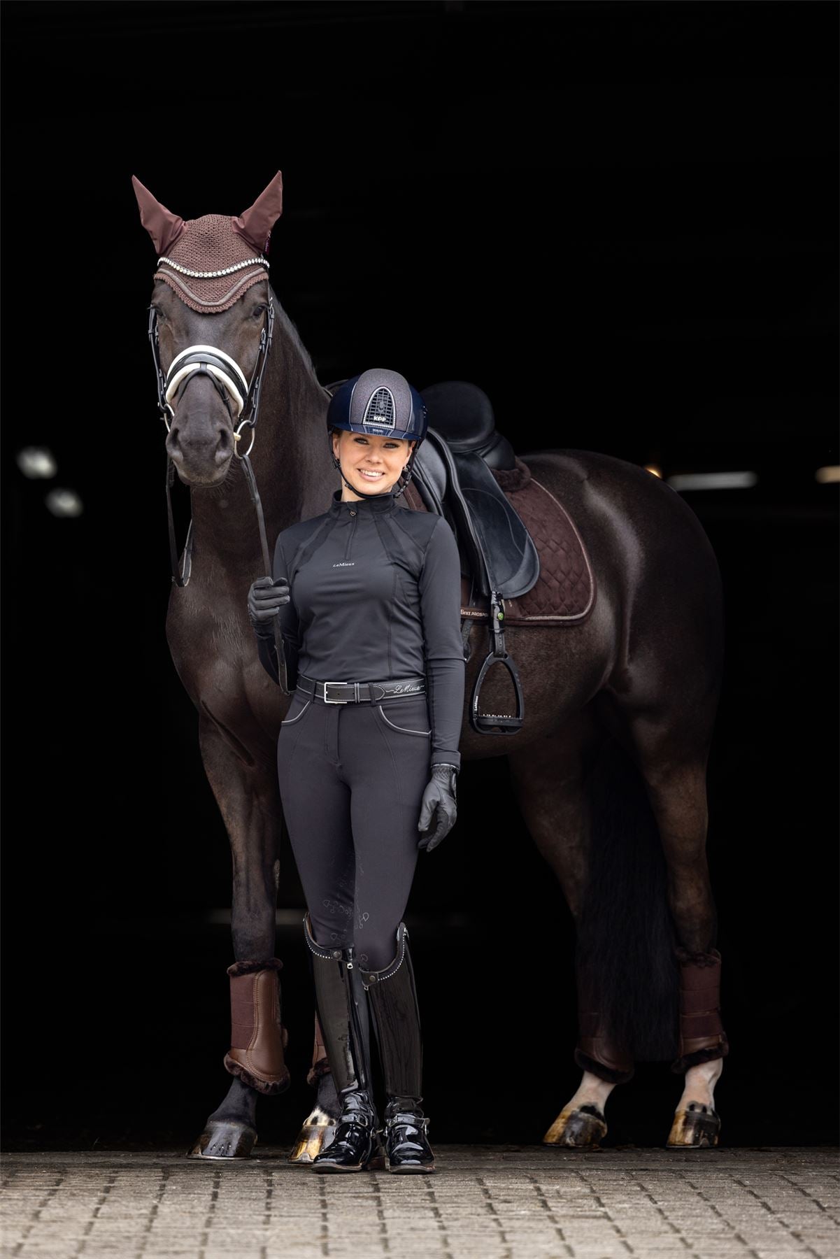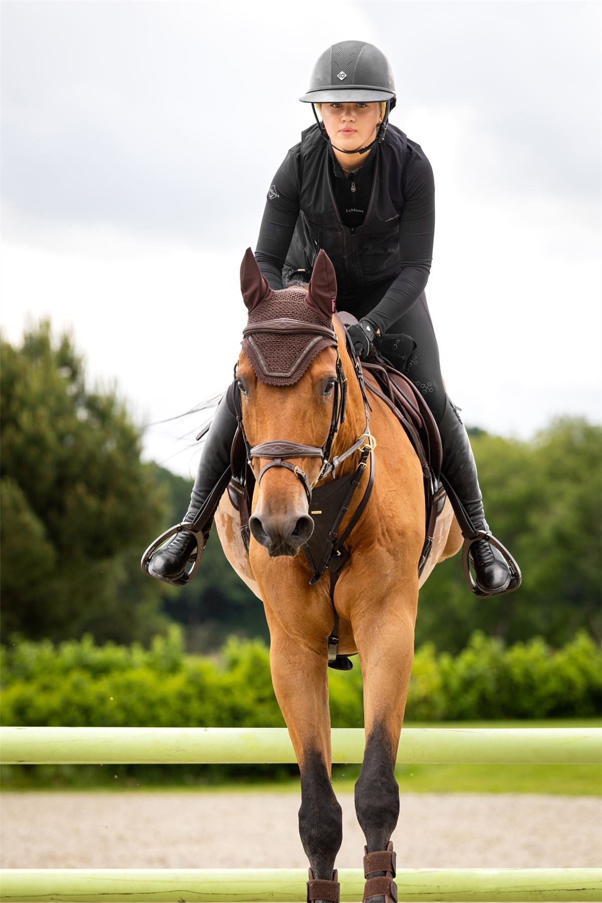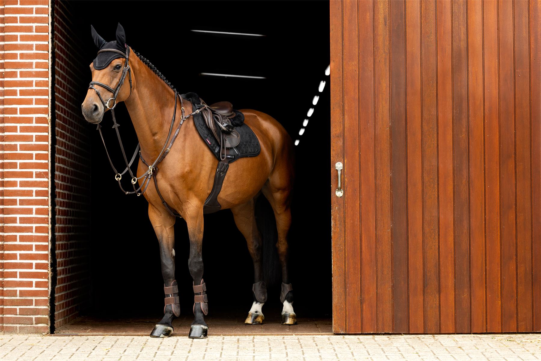 Our Crystal Fly Hood is designed to stand out when turn out matters. Finished with stunning sparkle and braided detail trims, this fly hood is hand-crocheted in an intricate four-way pattern, with soft stretch ears to protect your horse�s face and ears from flies and distractions. Designed for performance and competition, this fine Crystal Fly Hood offers the perfect blend of in-the-ring style and function. Secure and close-fitting under the bridle for maximum comfort, with minimal branding for a sleek and professional appearance. Pair the Crystal Fly Hood with our coordinating Crystal Saddle Pads.