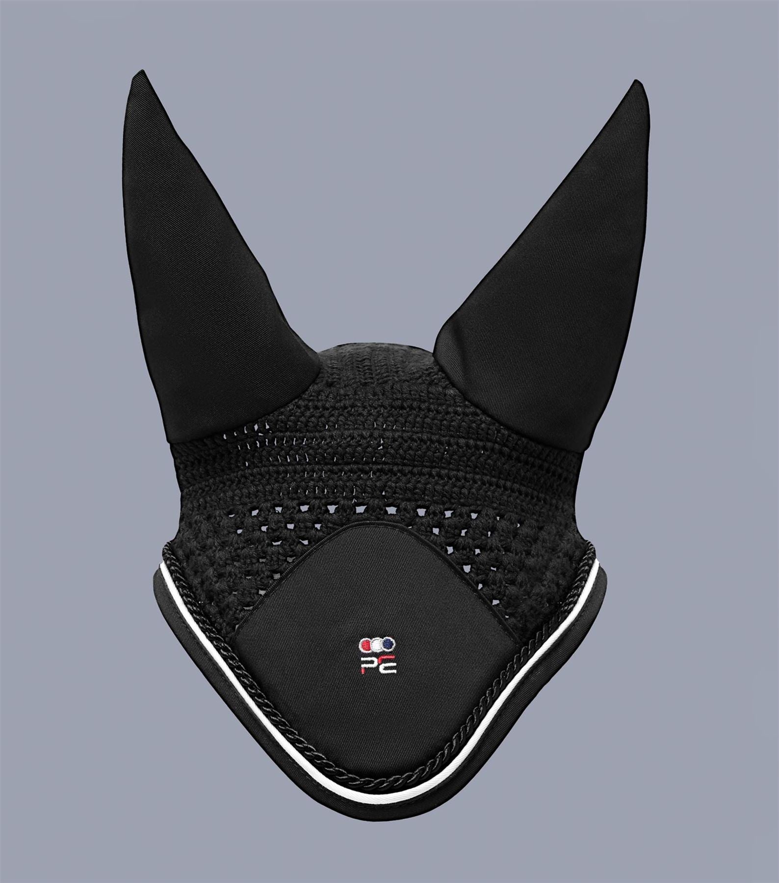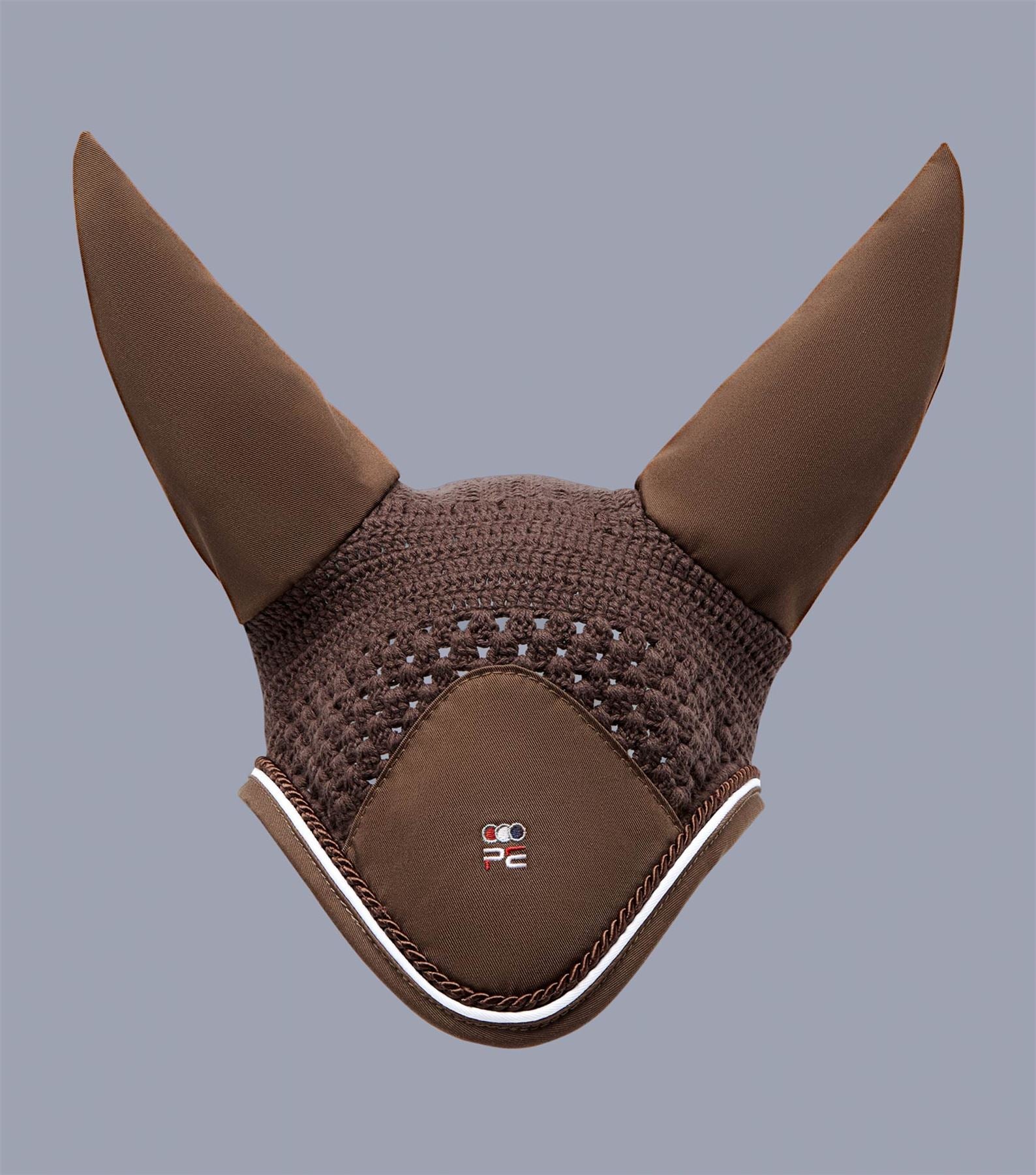 Stylish crochet material Soft, comfort fabric surrounding ears 'PE' branding at front Breathable Twisted rope bindings