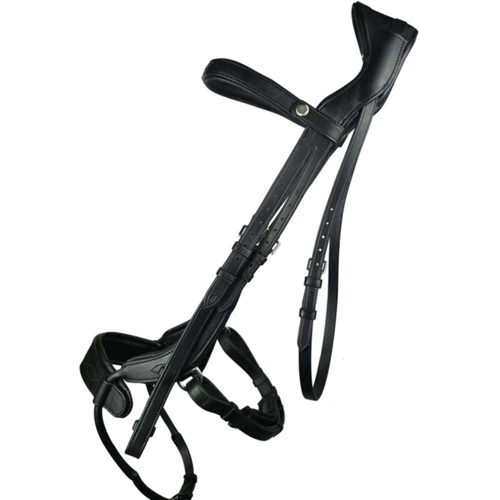 The chin strap is set back to avoid pressure on the molars. The adjustable bow moulds around your horse's nose. The Freedom Headpiece is designed to alleviate pressure from the nerve sensitive poll area and also through a cutaway around the base of the ears. The headpiece is further enhanced by a removeable throatlash designed to sit in the perfect position. Complemented by a beautiful dipped elegant browband that can be removed using Ecorider's "e-clasp" system.