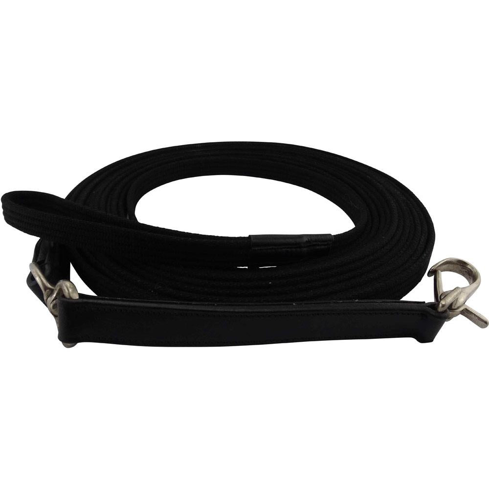 These traditional lunge reins are made from strong cotton 25mm web for strength and comfort. They are finished with a swivel and strong leather strap to a quality brass trigger hook.