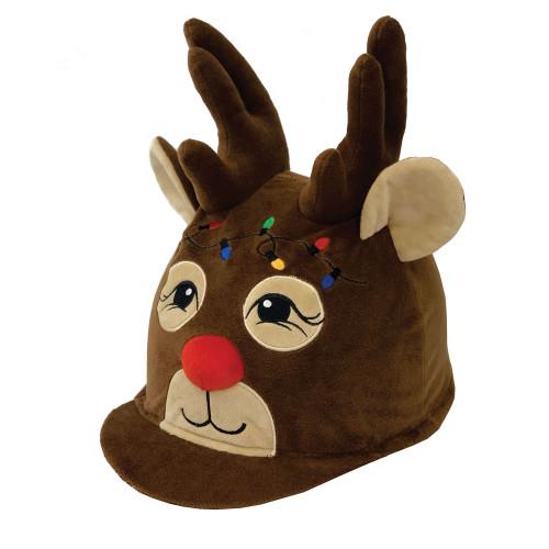 Limited Edition - Rudolph Reindeer Hat Silk - Collect them all! A cute red nosed reindeer themed plush fleece hat silk for a riding helmets. Features 3D antlers, nose, ears and embroidered face with xmas lights! A must have Christmas accessory! One size fits all. Machine washable. 100% Polyester.