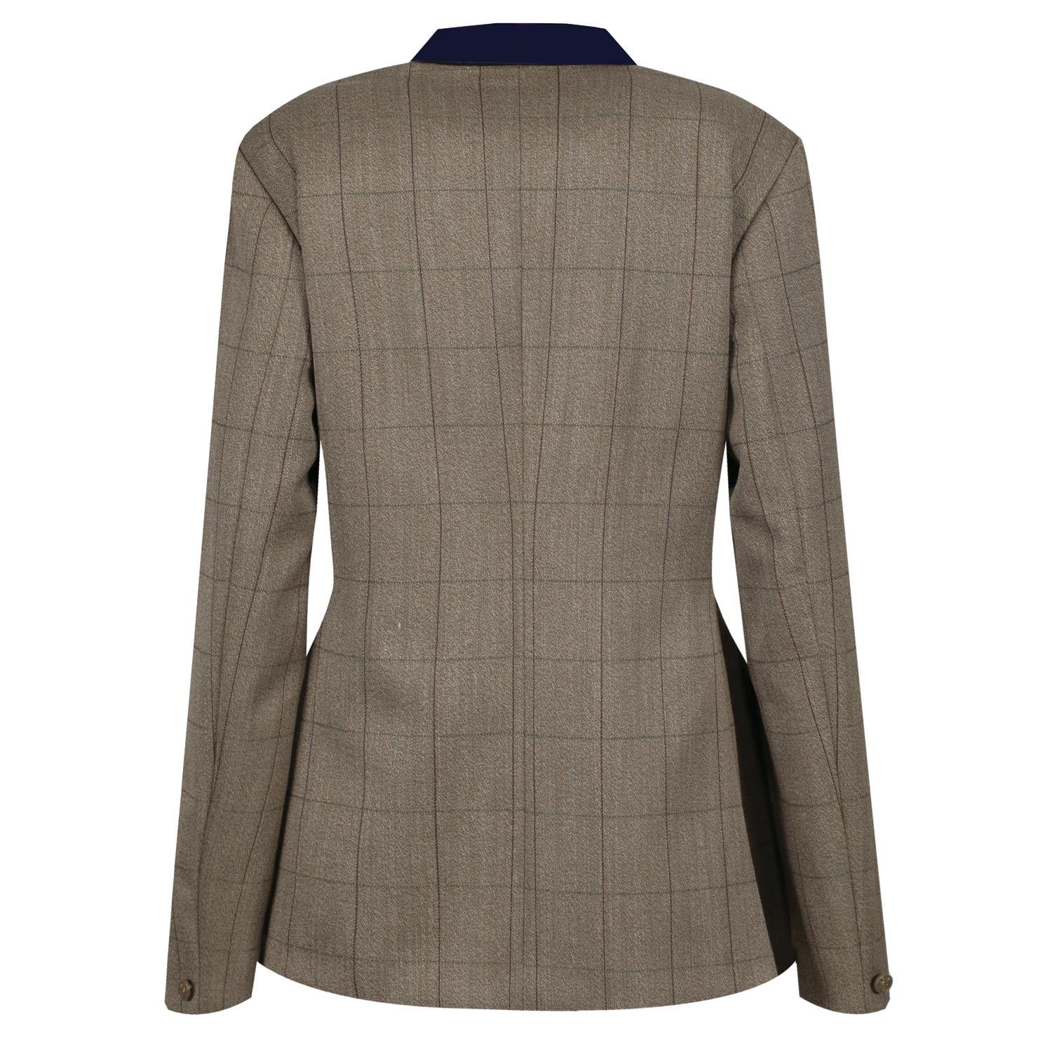 Exclusive Equetech tweed show jacket in an olive green tweed with subtle brown and green over checks. Features flap pockets with concealed zip pockets, rich gold Equetech jacquard lining, rich Navy collar and pocket jets and double back vents. Please note these jackets are generous, so if you are between sizes, go down a size.
