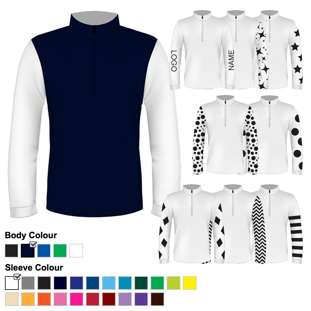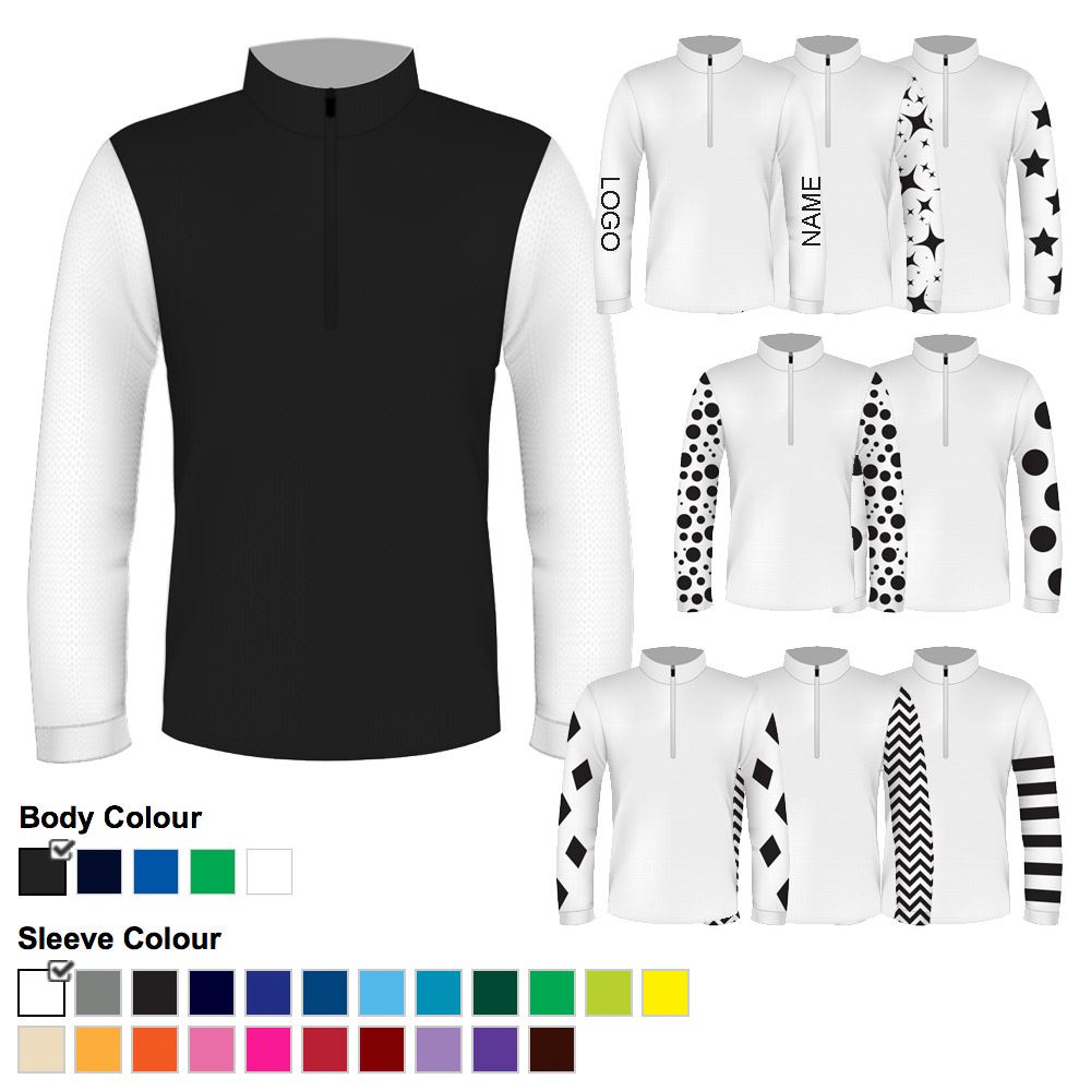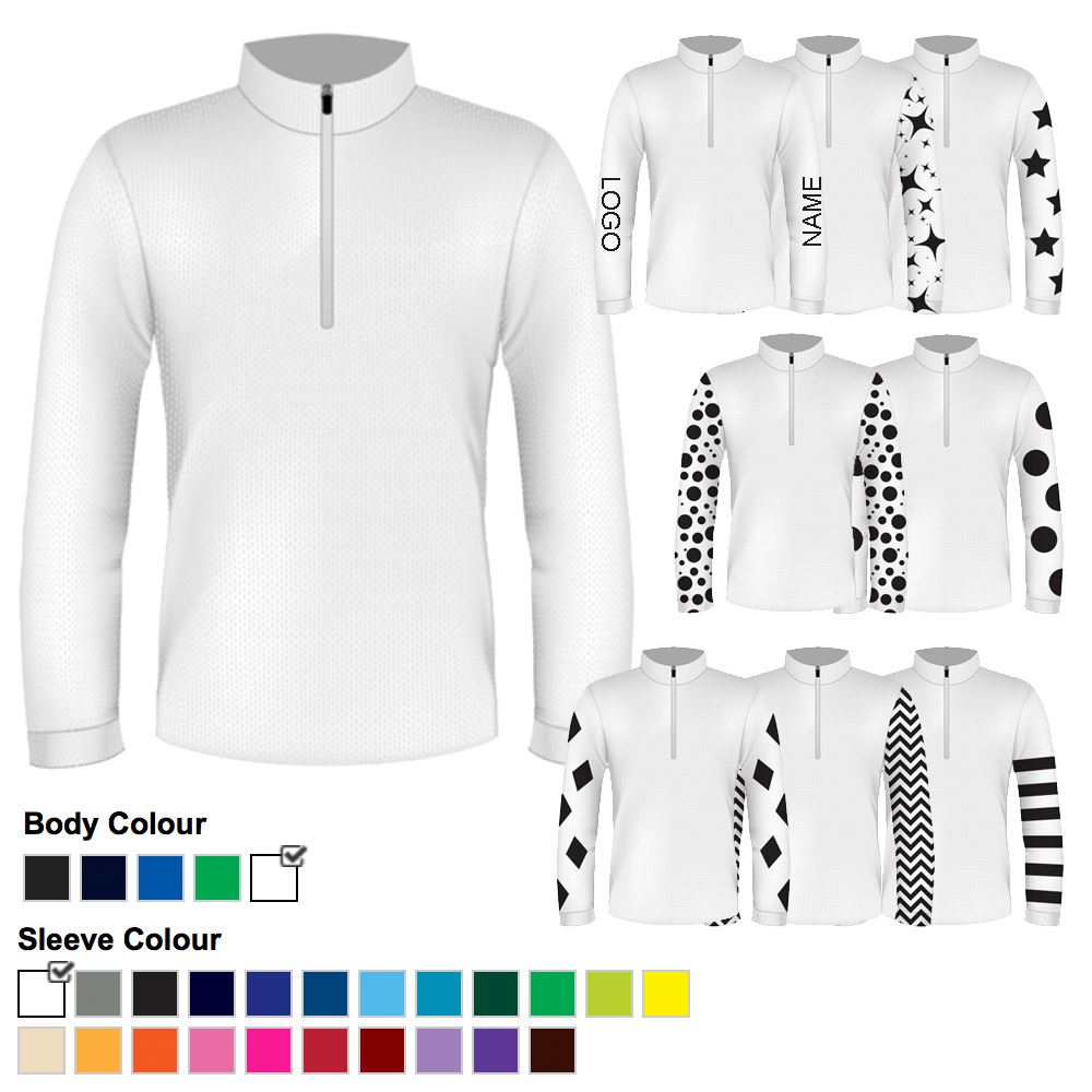 Design your own cross country shirt! With colours to suit every rider, you can create a unique event shirt. Choose 2 or 3 colours from the colour chart. Made from performance sports fabric with quick drying properties. Please allow 14-21 days for delivery. See full description for complete details on how to order.