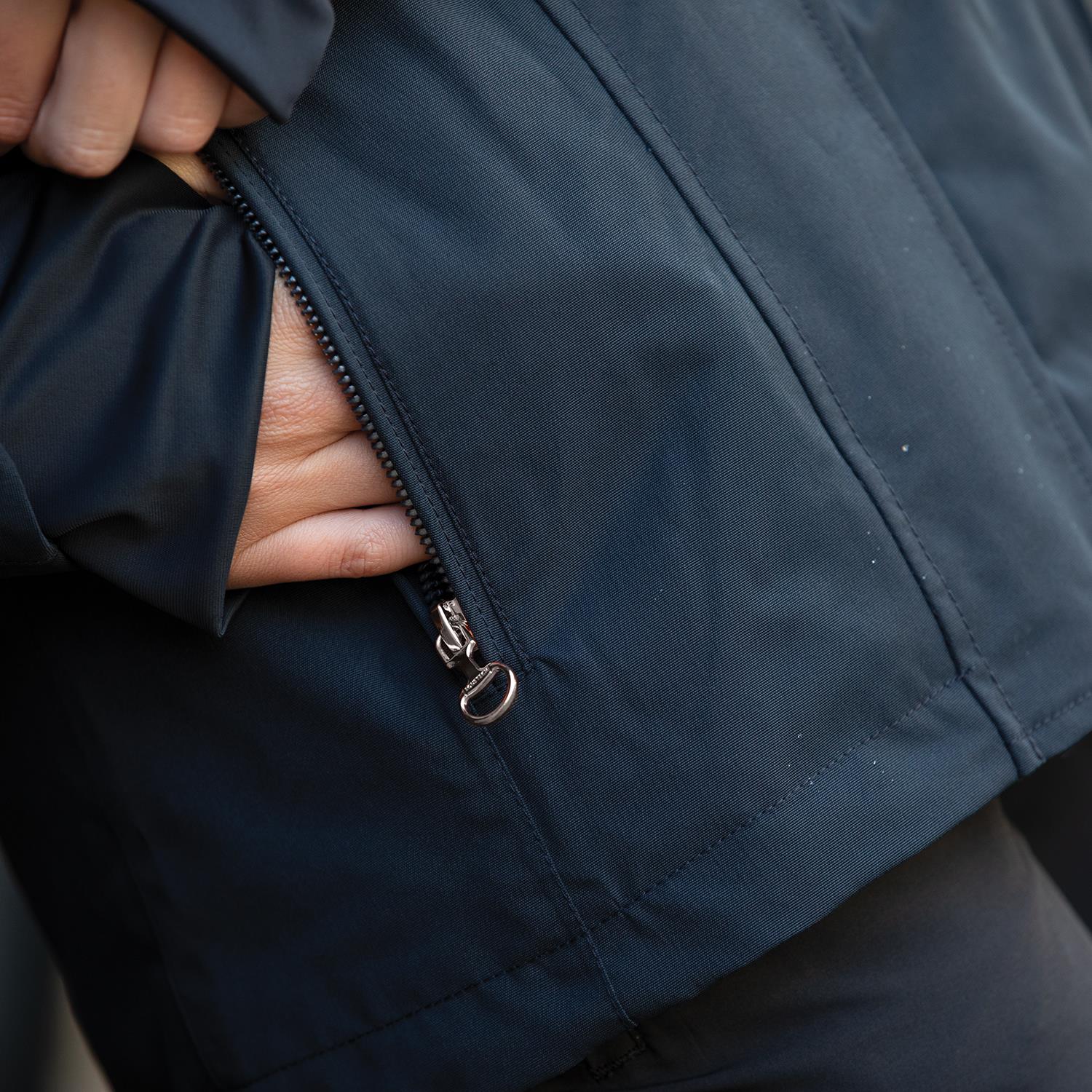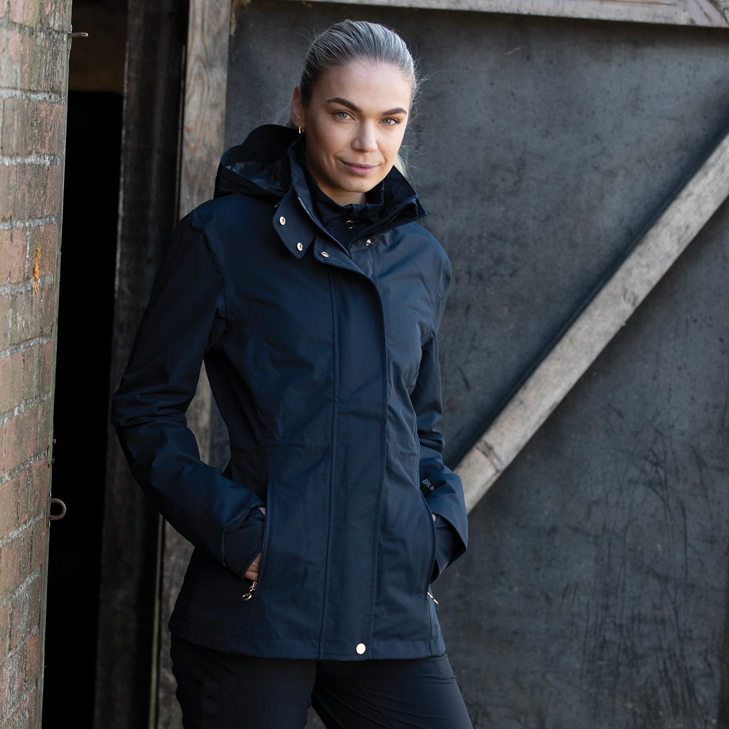 Stylish waterproof casual jacket for�training, as well as dog walking and equestrian all pursuits. A two-layer storm flap with magnetic closures for simplicity and durability. Features our mesh lining, concealed hood with peak and adjusters, draw cord waist, reflective piping to back, front zip pockets with zip Equetech horse bit pullers�and�cuffs with inner storm cuffs. Waterproof Rating > 16,000 Rain-proof and heavy pressure