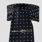 Jacquard fabrics; contrast pin spot polka dot design; self tying; how to tie a stock instructions