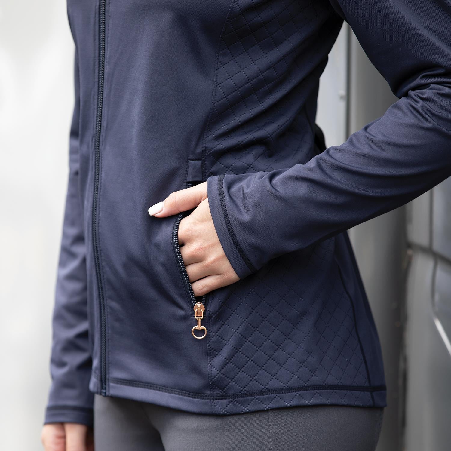 This jacket would be a great addition to your mid-layer�collection. Extremely versatile, it is crafted from�jersey fabric, which feels great to wear year round!�While offering a soft brushed lining, it remains breathable and ensures high levels of comfort throughout wear. Features two contrast�zip pockets to front, Equetech logo to bicep, ergonomic shoulder panels, quilted design to side panels�and high neck collar. Machine washable. 90% Polyester / 10% Elastane.�