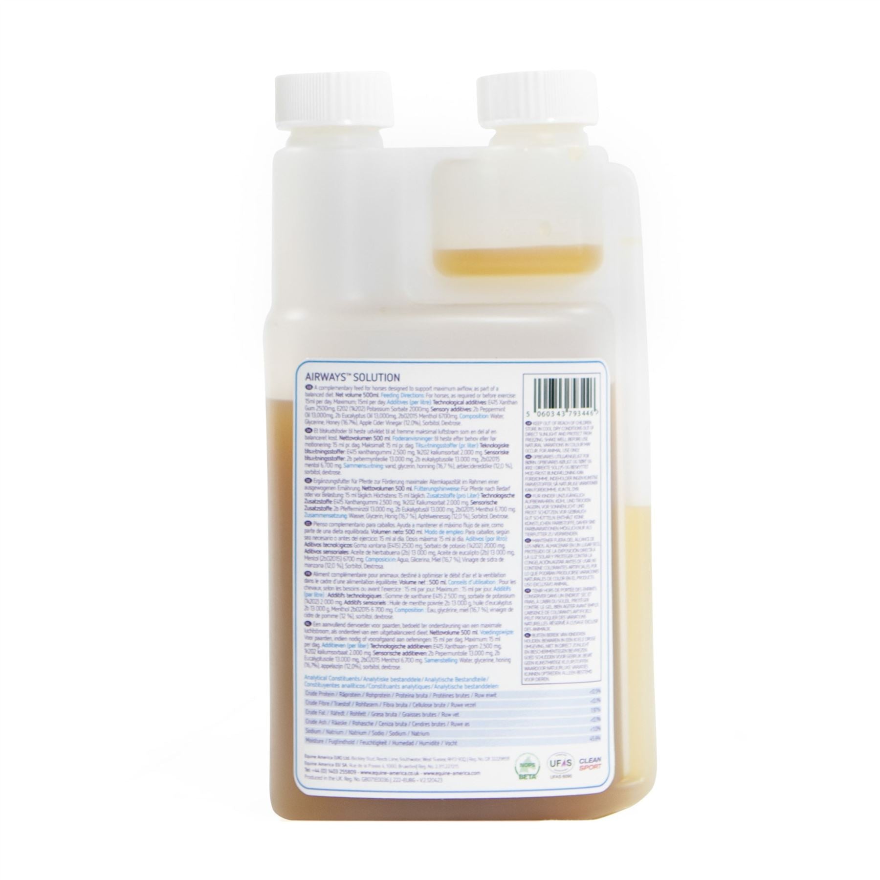 Targeted nutritional support can help the horse�s natural defences against such challenges, and Airways Solution contains a powerful blend of plant-derived essential oils to help open the airways and maintain a healthy respiratory system. Honey and apple cider vinegar are also included to help soothe the respiratory tract.