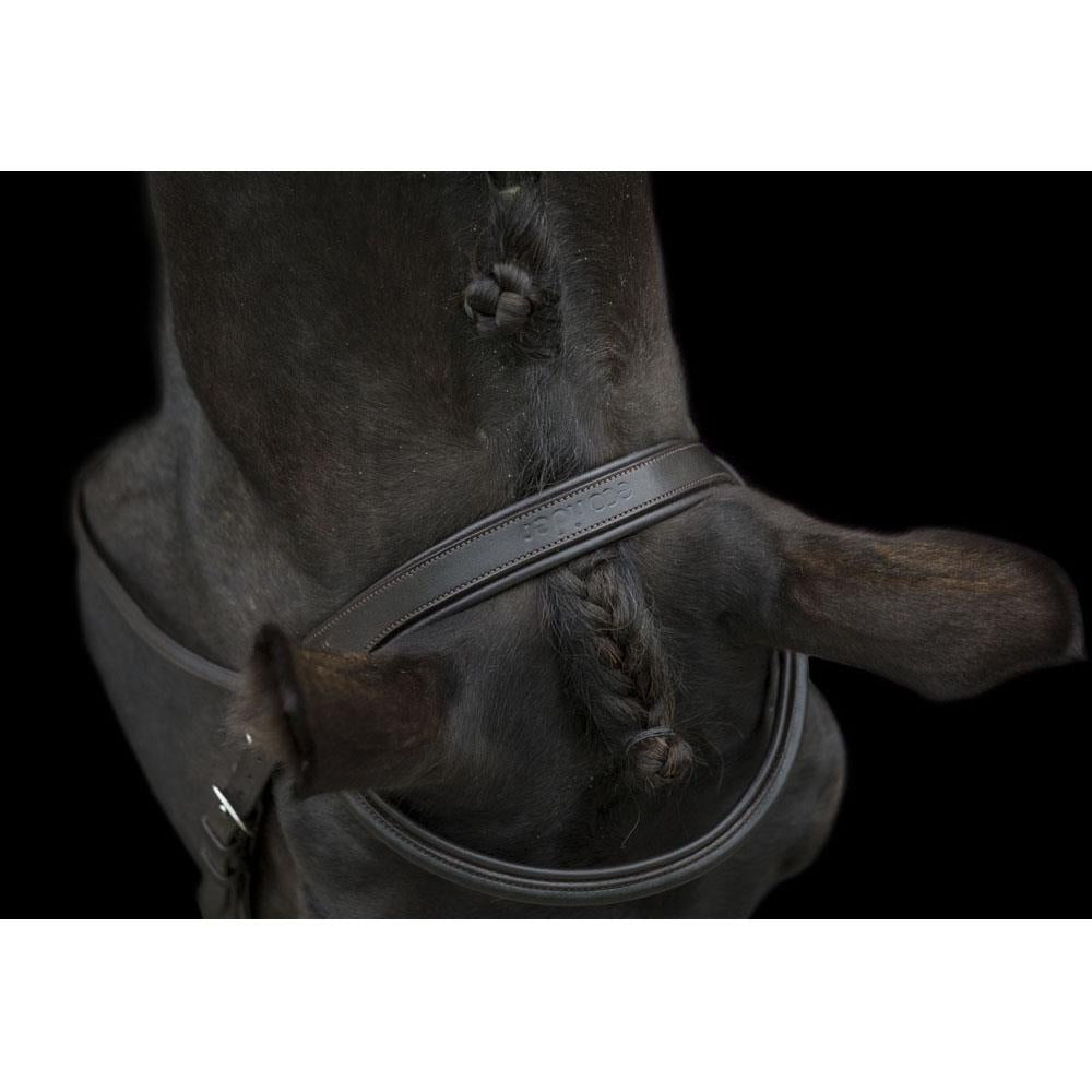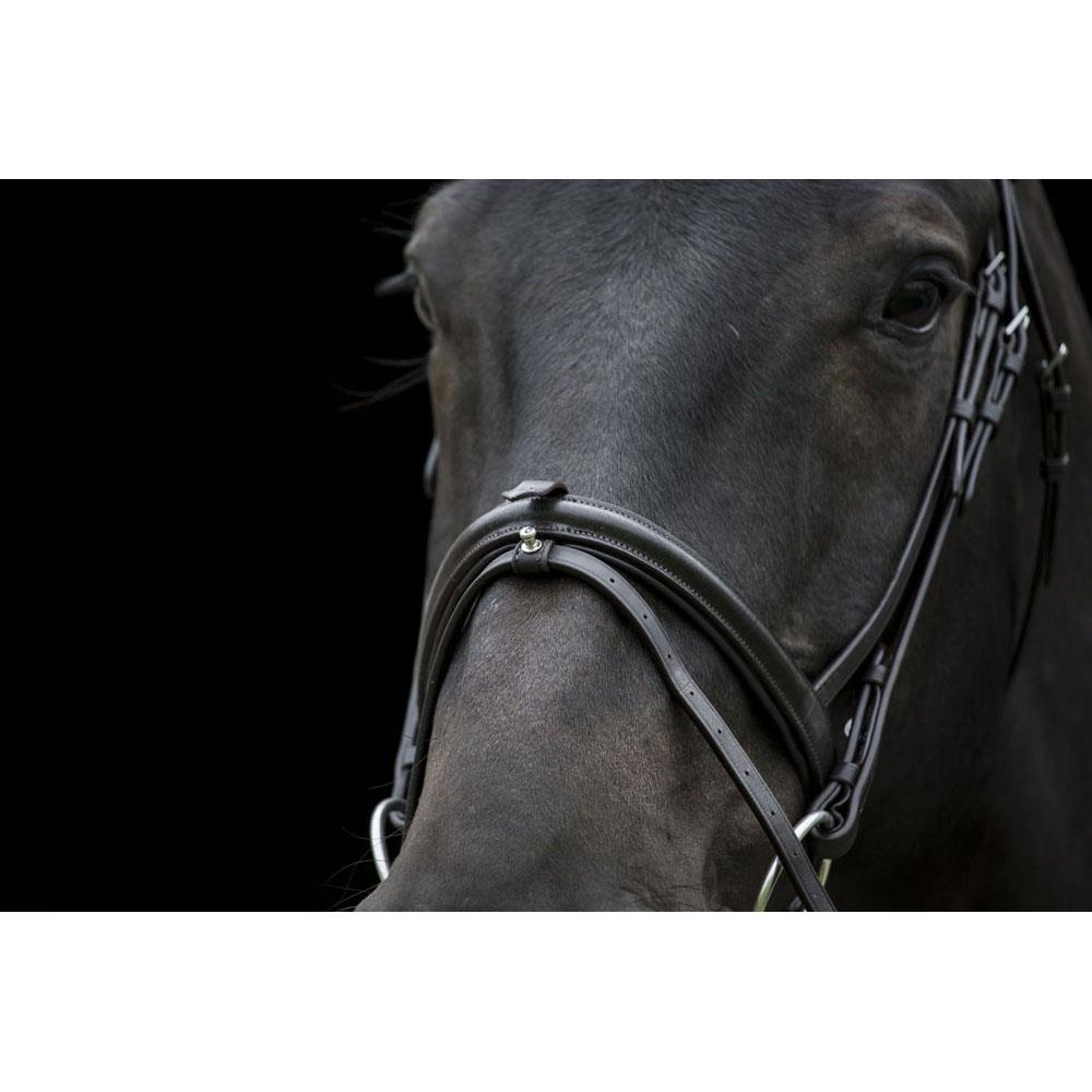 Handcrafted using the finest EcoLeather this bridle benefits from a slight cutaway from the lower ear with a soft padded headpiece. The bridle has soft padding around the hose and brow for extra comfort.