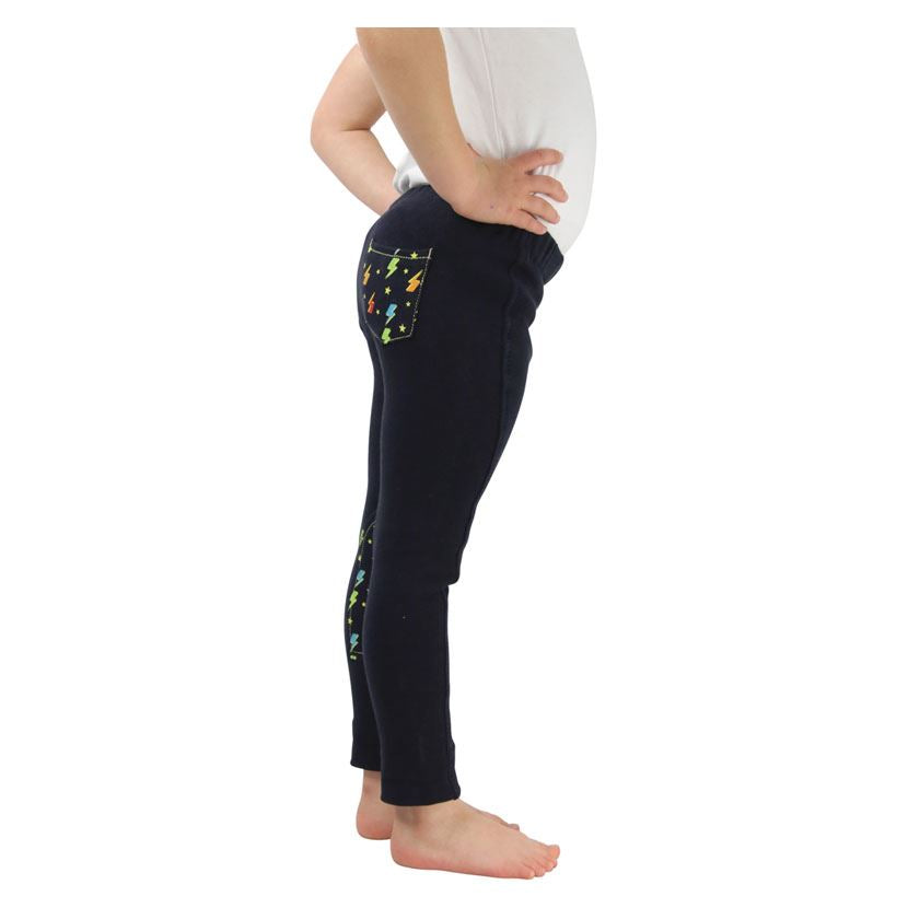 As quick as a flash! These durable, fun and colourful tots jodhpurs feature lightening and stars on the pockets and knee patches. The pull on design means they are comfortable and make for easy dressing! With discrete Hy Equestrian logo to the waist.