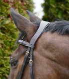 This bridle has a fully padded headpiece with no additional headstall for the noseband keeping comfort in mind for the horse. With a wide, padded browband and noseband with a leather fob behind the chin buckle against the horse. This bridle has brass tone buckles and comes complete with smooth feel rubber reins. Anatomically curved headpiece No additional headstall straps Padded wide noseband and brownband Includes smooth feel rubber reins