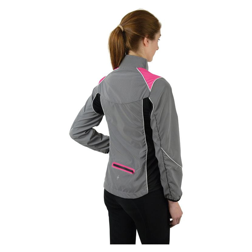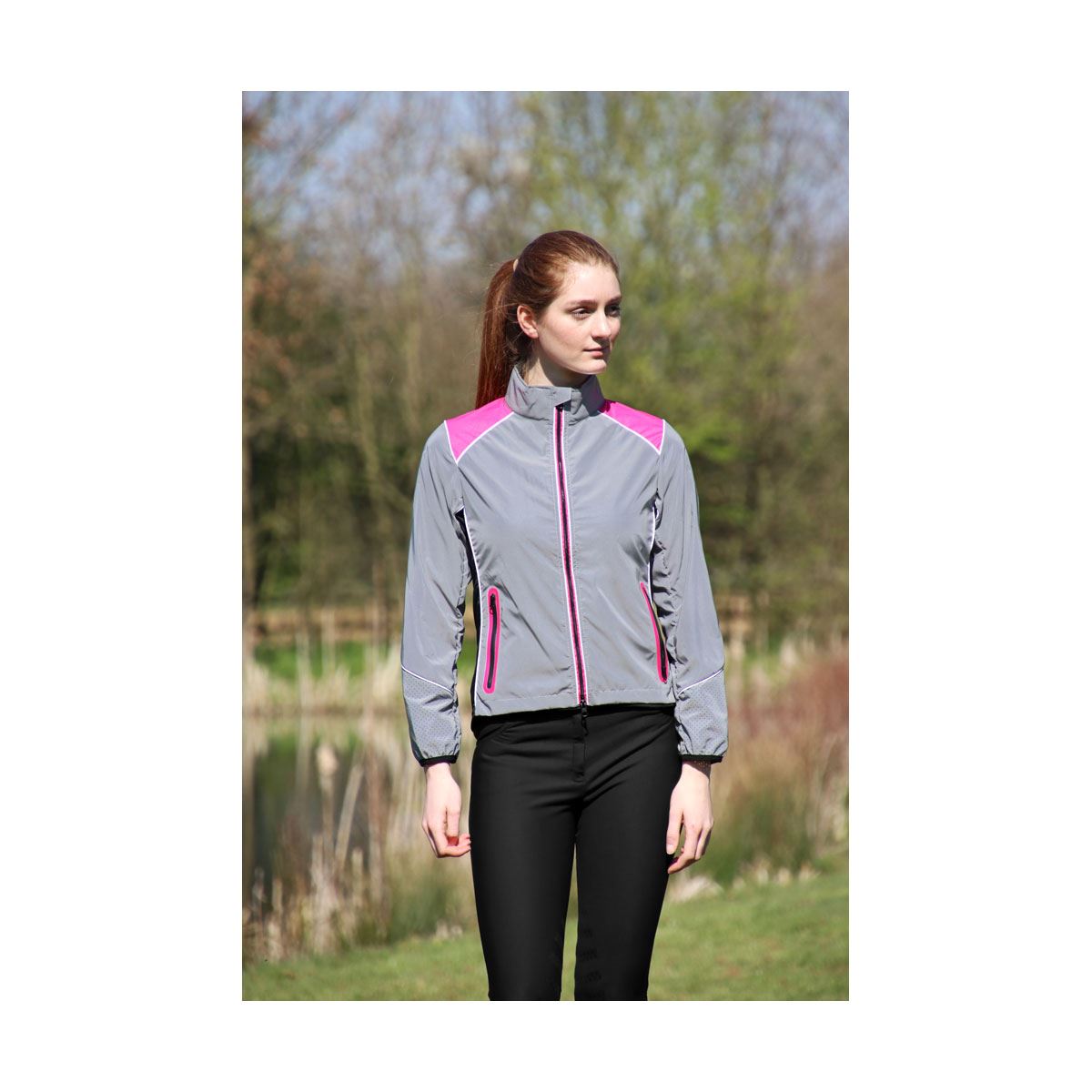 The HyVIZ Silva flash two tone reflective jacket ensures optimum visibility during those dark, winter months. The incredibly reflective outer shell creates 360 degree visibility via a dazzling white glow when a light is shone at it. The splash of pink adds a bit of fun and extra visibility to this safety garment. Made using an ultra-light, wind resistant material, this jacket is breathable and protects you from elements. Stretch panels down both sides allows movement and encourages moisture and excess heat to disperse. The jacket boasts a handy back pocket and a 2-way YKK zip front. This jacket is comfortable and safe to wear in or out of the saddle.