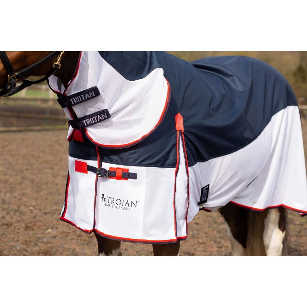 The Gallop Trojan 2-in-1 Turnout Fly Rug is an innovative solution designed to handle the UK's unpredictable weather. Combining a waterproof upper with a breathable mesh lower, it provides comprehensive protection and comfort for your horse.