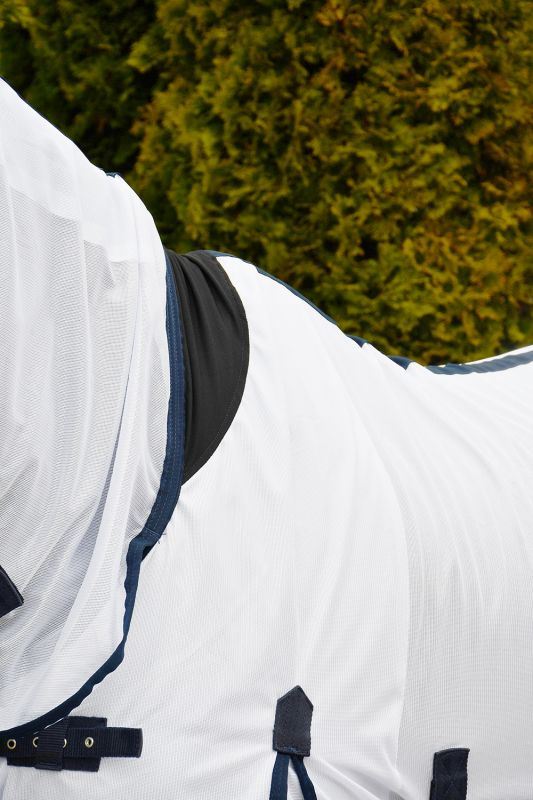 The Africa Combo Fly Rug has been crafted from a lightweight yet durable mesh fabric. The small hole mesh design allows for maximum airflow and high breathability whilst shielding against insects. The full neck design provides maximum coverage from UV and insects, featuring a lycra insert at the withers for unmatched comfort and to allow for greater movement. The double chest buckles allow for this fly rug to remain as lightweight as possible. Lined over the mane, wither, and the shoulder, with anti-static fabric to enhance hygiene and comfort, promoting good coat health, and reducing the risk of rubbing. This fly rug features a large tailguard, a high cut shoulder gusset for a greater range of movement and also a highly effective belly guard for all round protection against flies. Breathable mesh material Fixed neck cover for full coverage Belly guard for protection from flies High Shoulder gusset for movement