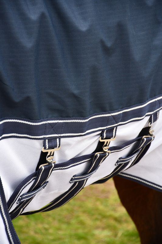 The Sierra Topline Fly Rug has been constructed with performance and durability in mind. Offering ultimate versatility during the warmer months when the weather can still be unpredictable. Designed with a 600 denier waterproof topline to shield your horse from any unexpected showers of rain. A lightweight, breathable and durable mesh material makes up the lower section offering UV protection as well as effective fly repellent. This fly rug features a full neck cover for maximum coverage, a large tailguard, a high cut shoulder gusset for a greater range of movement and also a highly effective belly guard for all round protection against flies. 600 denier waterproof topline Breathable mesh lower section Fixed neck cover for full coverage Belly guard for protection from flies Multi-adjustable chest fittings for a wider range of adjustment High shoulder gusset for movement.