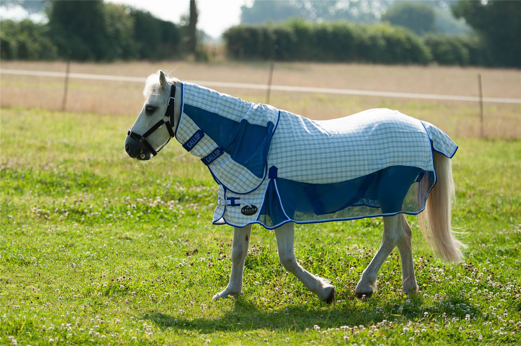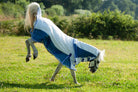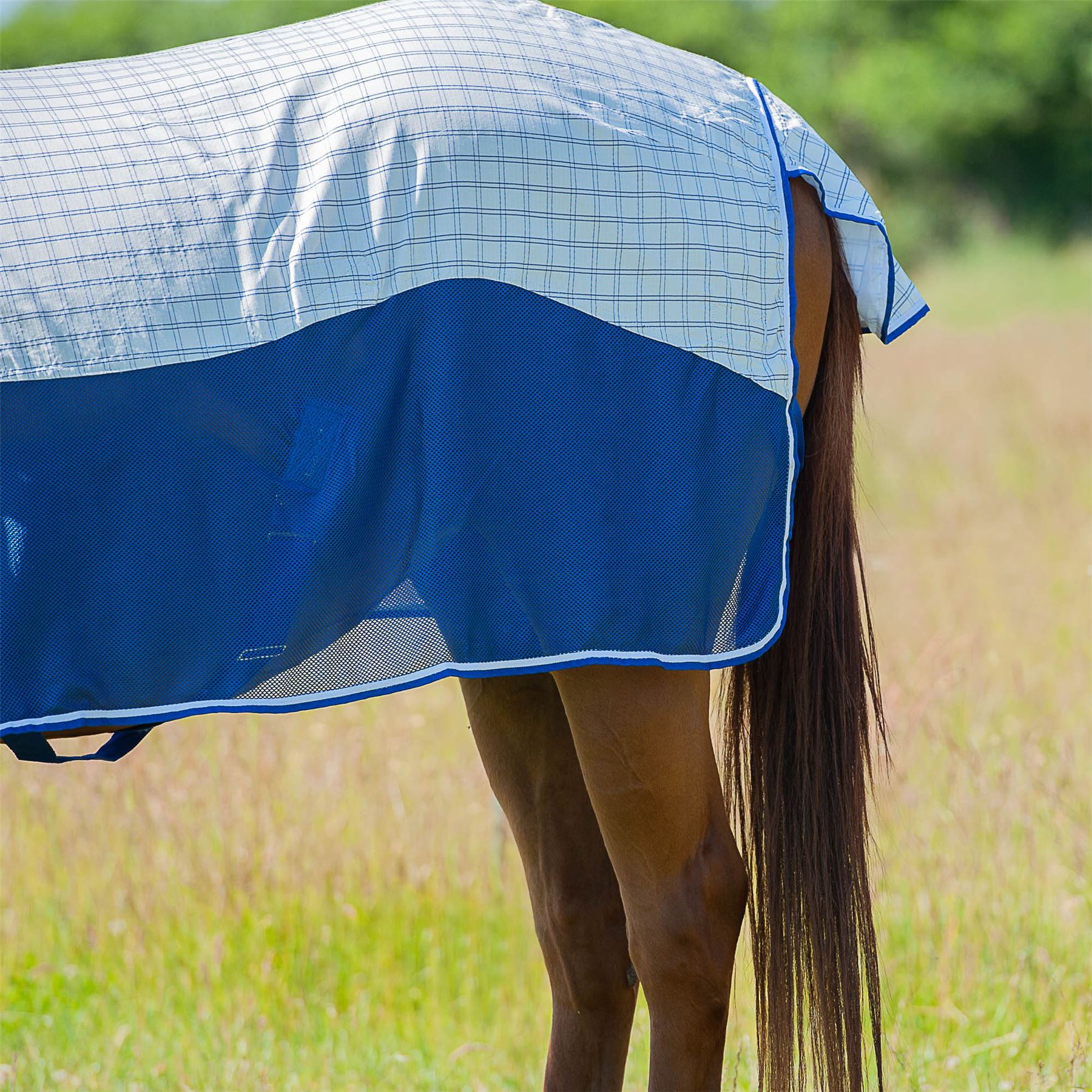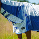 Combo neck design, breathable and cool 270g Polycotton upper with polyester mesh panels for the ultimate in airflow for the warmer months. Featuring wither relief pad to help reduce rubbing and pressure in the wither area and 210D polyester lined shoulders, mane and tail flap to prevent rubbing. Traditional side gusset for natural movement, tail flap and twin buckle chest strap, adjustable hidden surcingle and adjustable and removable web leg straps. Upper panel offers 95%+ UV block.