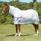 The Kool Coat Airstream with Hidden Surcingle III Combo Neck has a breathable and cool 270g polycotton upper with 100% polyester and the upper panel offers 90%+ UV protection. Lined shoulders to help prevent rubbing, with a mesh lower panel to help aid with cooling and airflow during the warmer months and conditions, giving your horse greater comfort. Featuring traditional shoulder gussets, twin adjustable buckle front closure, adjustable hidden surcingle belly closure, large tail flap and adjustable & removable web leg straps.