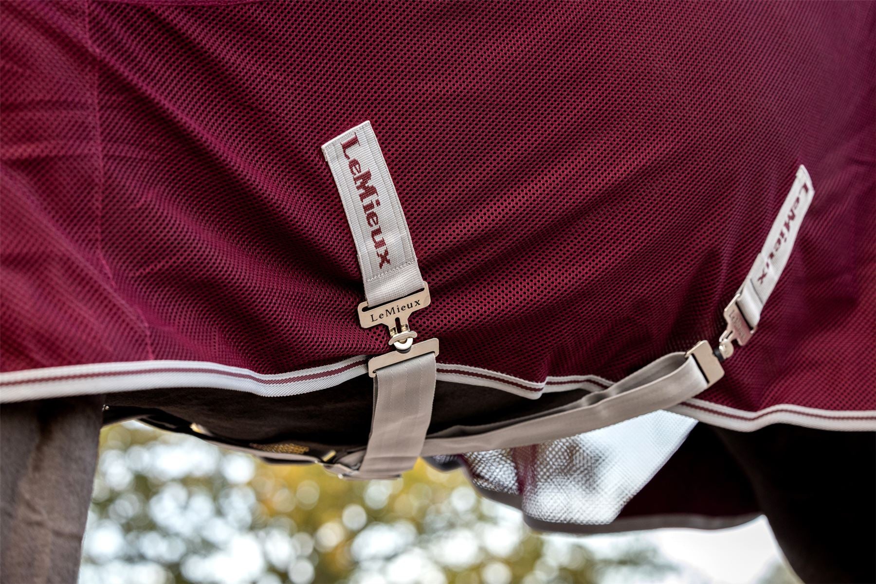 This lightest mesh sheet offers maximum cooling with minimal weight, designed for the warmest conditions. Linear cooling strips alternate open-weave mesh and 3D mesh for structural integrity with cooling respite along the body. The deep burgundy colorway, contrasting with light grey jacquard webbing, and LeMieux wordmark detailing, means your horse can look its best even in the hottest weather. Delivering a whole-body cooling effect, the stretch-lined chest has a sturdy yet lightweight T-bar front closure, adjustable for optimum fit. Adjustable crossed surcingles and a soft cord fillet string ensure you can comfortably fit the rug close to your horse�s body for the maximum cooling effect. Technical Specification Linear cooling strips Lightweight mesh skirt Elastane-lined chest T-bar front closure Crossed surcingles Rear cord fillet string