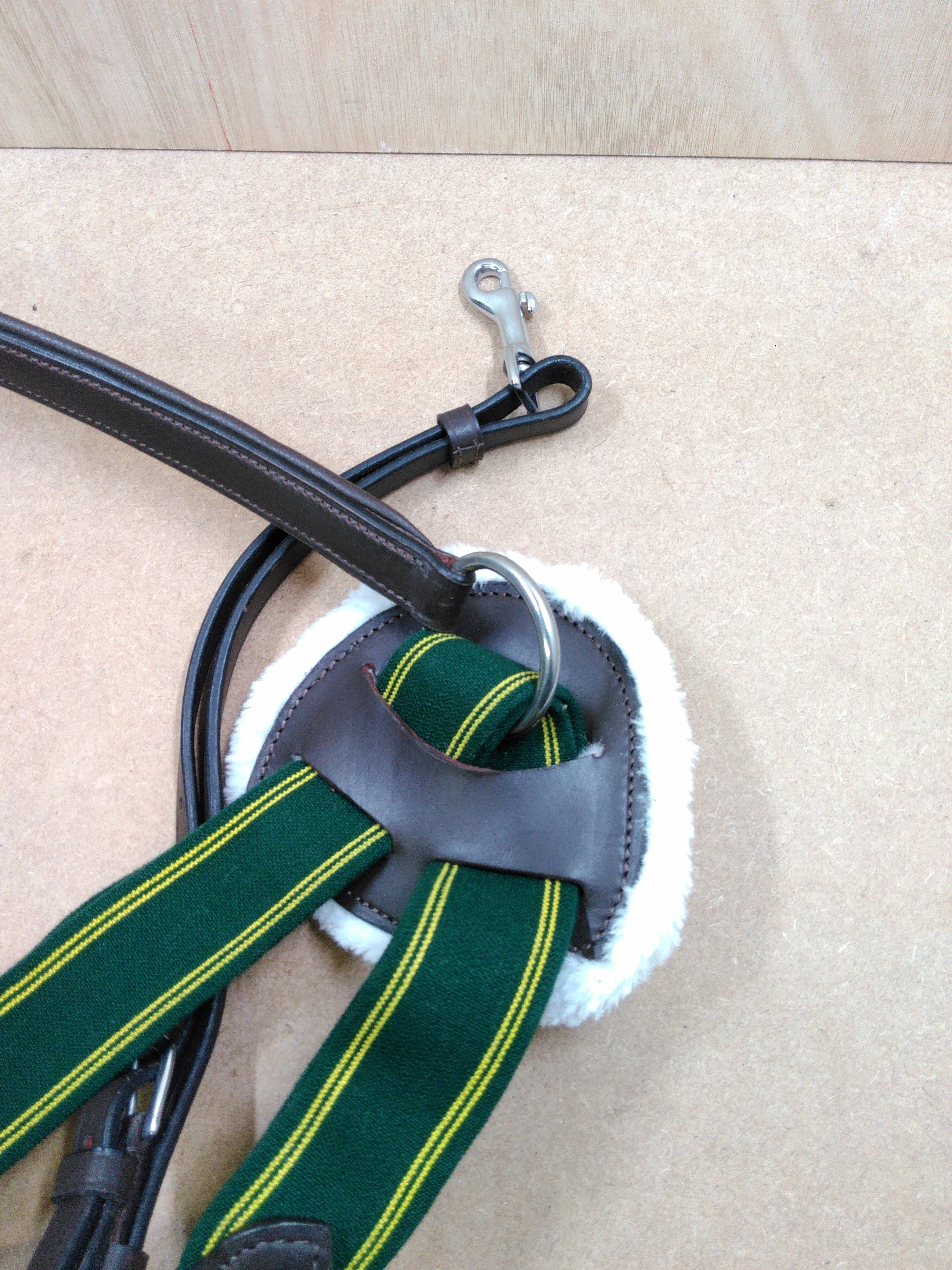 The Gallop Equestrian Leather 5 Point Breastplate is designed to provide optimal support and stability for your saddle. Made from high-quality leather, this breastplate ensures your saddle stays securely in place during rides. Despite minor blemishes on the leather keeper, this item remains unused and fully functional, making it a great addition to your equestrian gear.
