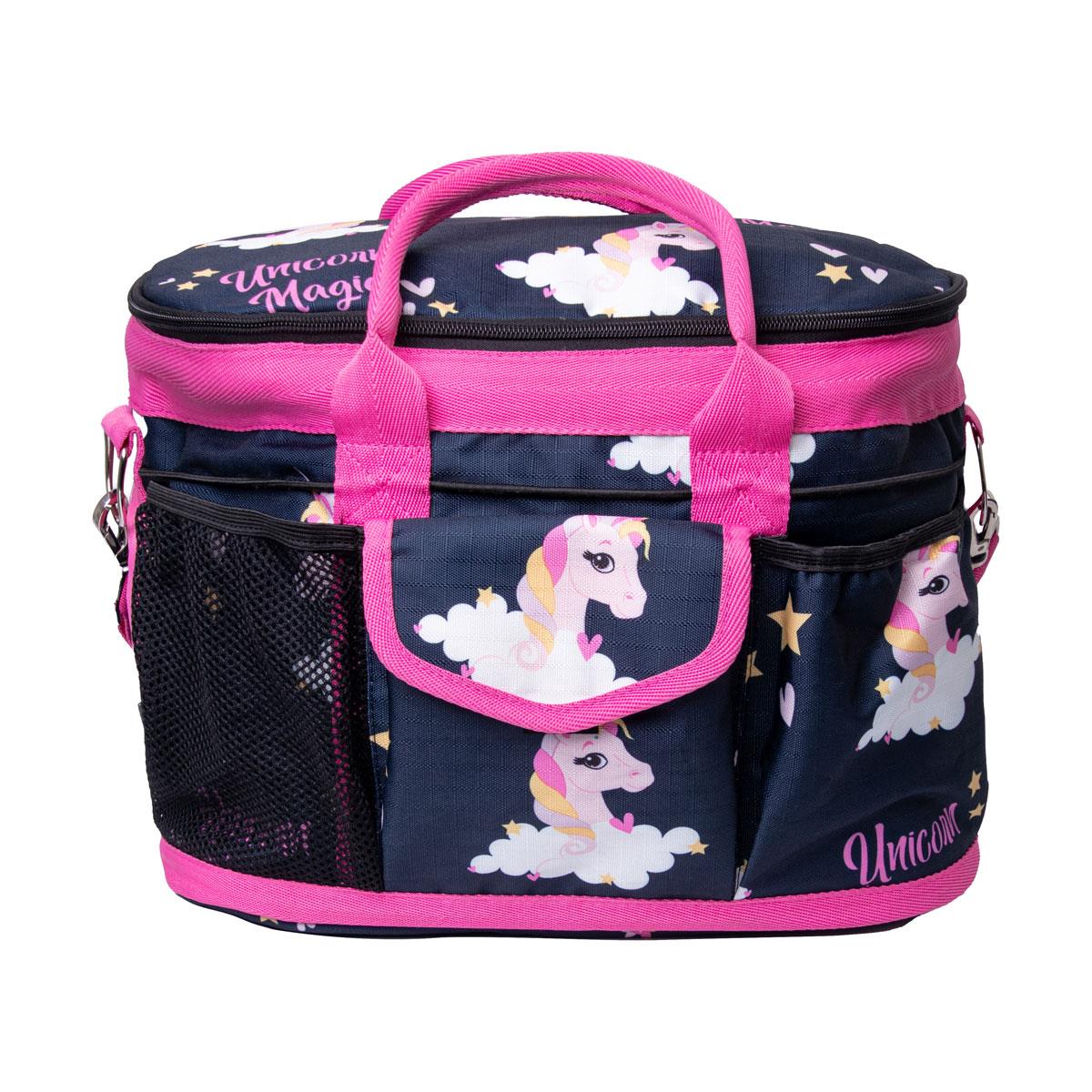 This gorgeous bag featuring unicorn characters will keep all your grooming essentials organised and secure. Six outer pockets allow for quick access and the large main compartment also features a secure inner zip pocket. The base is reinforced to prevent damage and the bag has grab handles and a removable shoulder strap. Made from a waterproof nylon material to keep your possessions dry and protected.