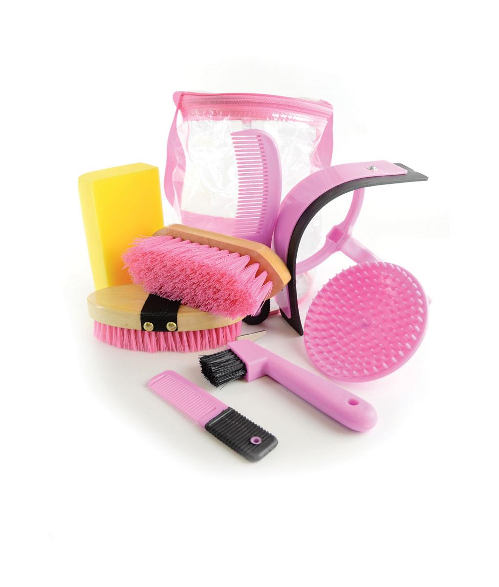Shop now at Just Horse Riders for our Grooming Kit in a vibrant Pink colour. This kit is the perfect gift for equine enthusiasts, packed with essential tools to keep your horse looking its best. The kit includes a Sponge, Curry Comb, Mane Comb, Tail Comb, Hoof Pick, Body Brush, Dandy Brush and a Sweat Scraper; all matching in a lively pink shade. Ideal for treating your horse and ensuring they stay well-groomed and happy. Our quick dispatch and delivery services ensure you'll receive your order in no time. If you have any questions, don't hesitate to contact us. We pride ourselves on our high-quality customer service.