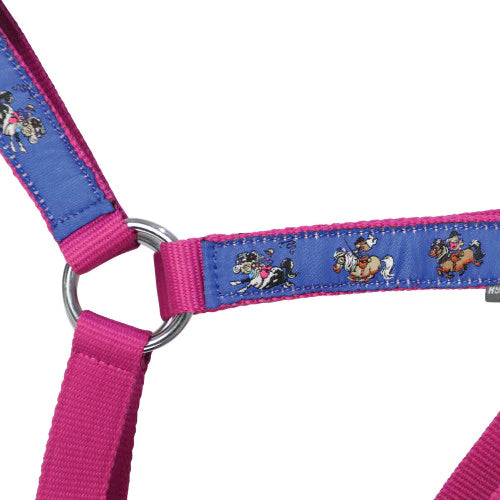 Perfect for any Thelwell lover! This Thelwell print head collar and lead rope is ideal for everyday use or special occasions. This durable head collar features a soft two tone lead rope and racing Thelwell characters printed on the nose and cheek pieces. Complete the look with the Thelwell Race Collection!
