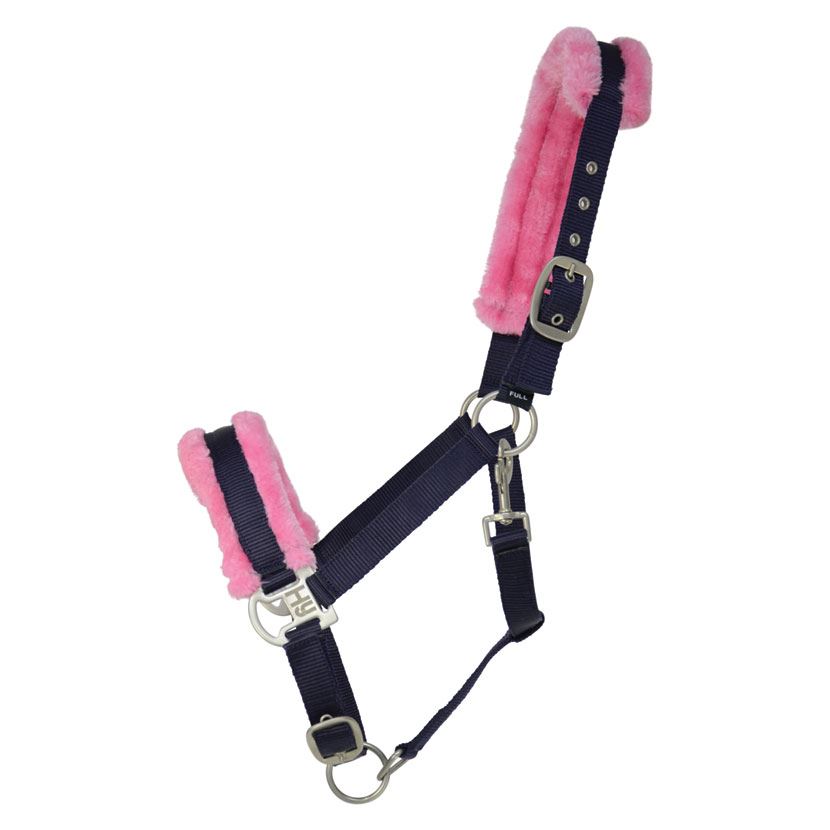 This fully adjustable headcollar is pretty, fun and comfortable. Featuring silver fittings and coloured faux fur padding at the nose band and head piece for your horse�s comfort. These faux fur trims are detachable for ease of washing.