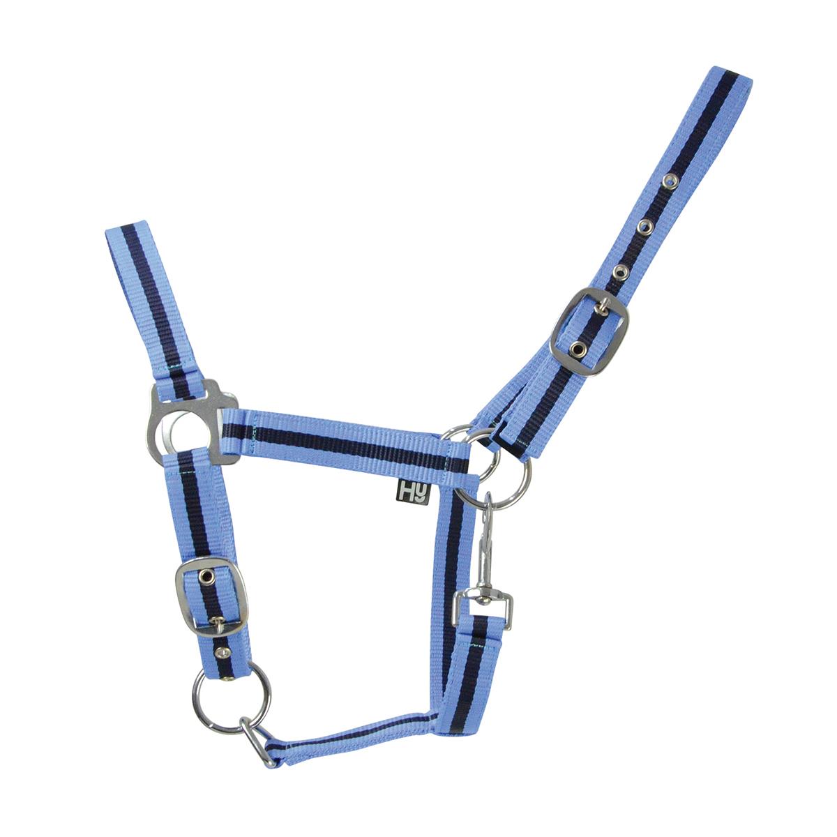 An affordable headcollar, perfect for everyday use. The Hy two-tone headcollar features stainless steel fixtures and has a fully adjustable headpiece and throat lash fastening with reinforced eyelet holes for increased durability. Made from soft webbing material in two-tone contrasting colours.