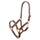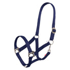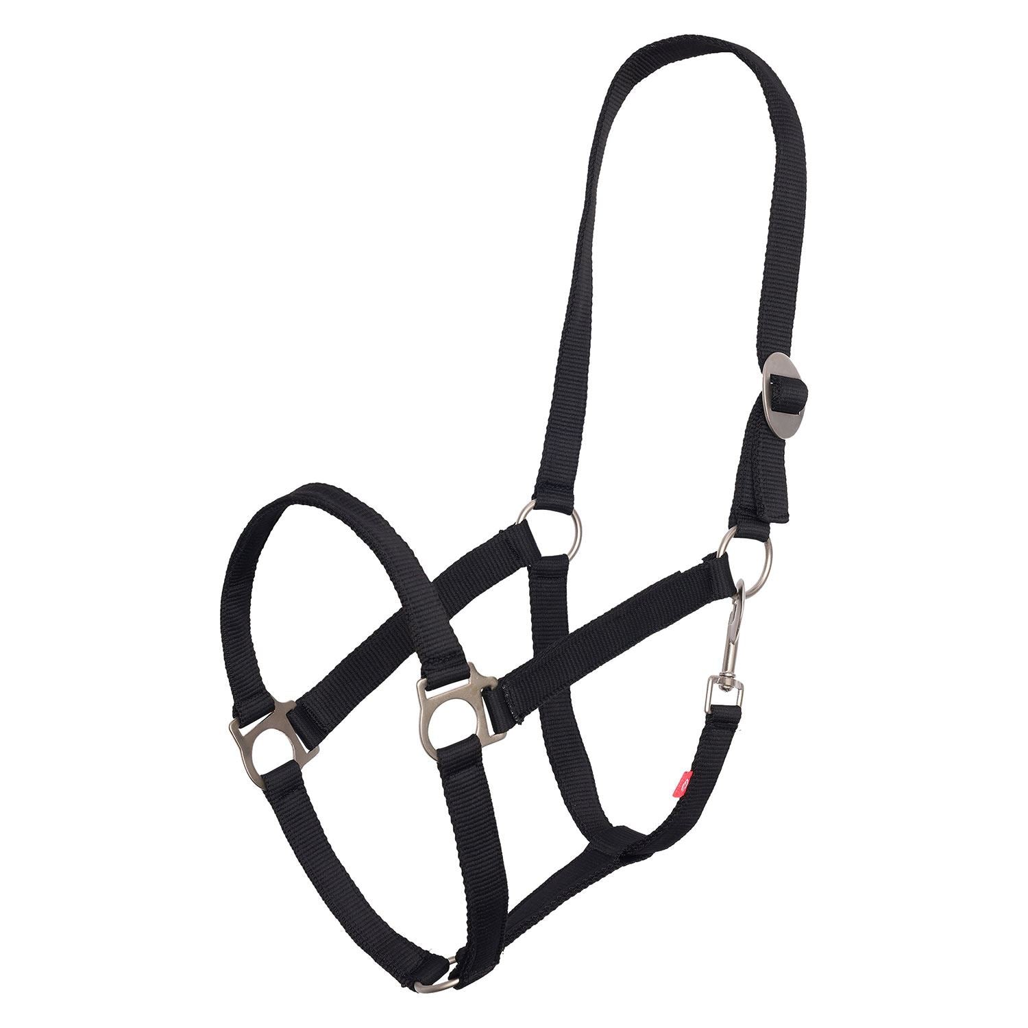 Economic nylon halter with sliding buckle and throat strap with snap. Width is 25mm.
