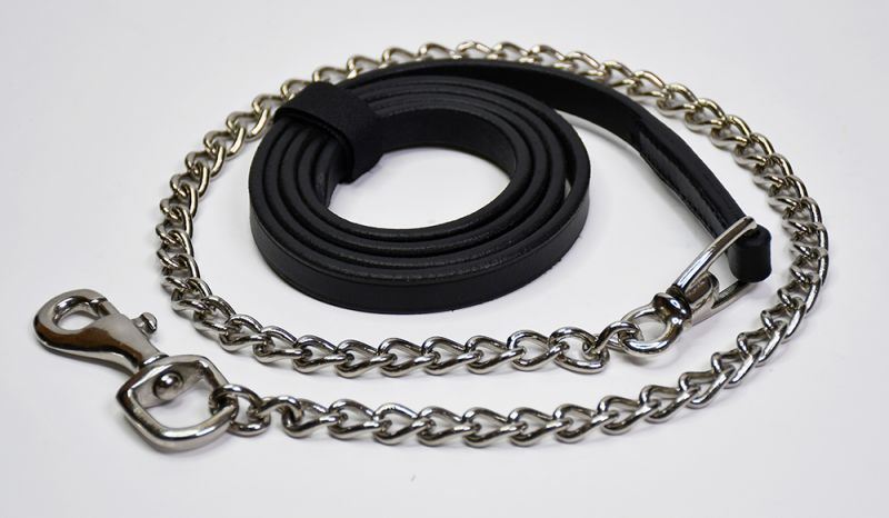 Beautiful Leather Lead with Chain and trigger clip end. Black has Silver tone chain and clip, Havana has brass tone chain and clip. Will match Veneto Show Bridle Code R102