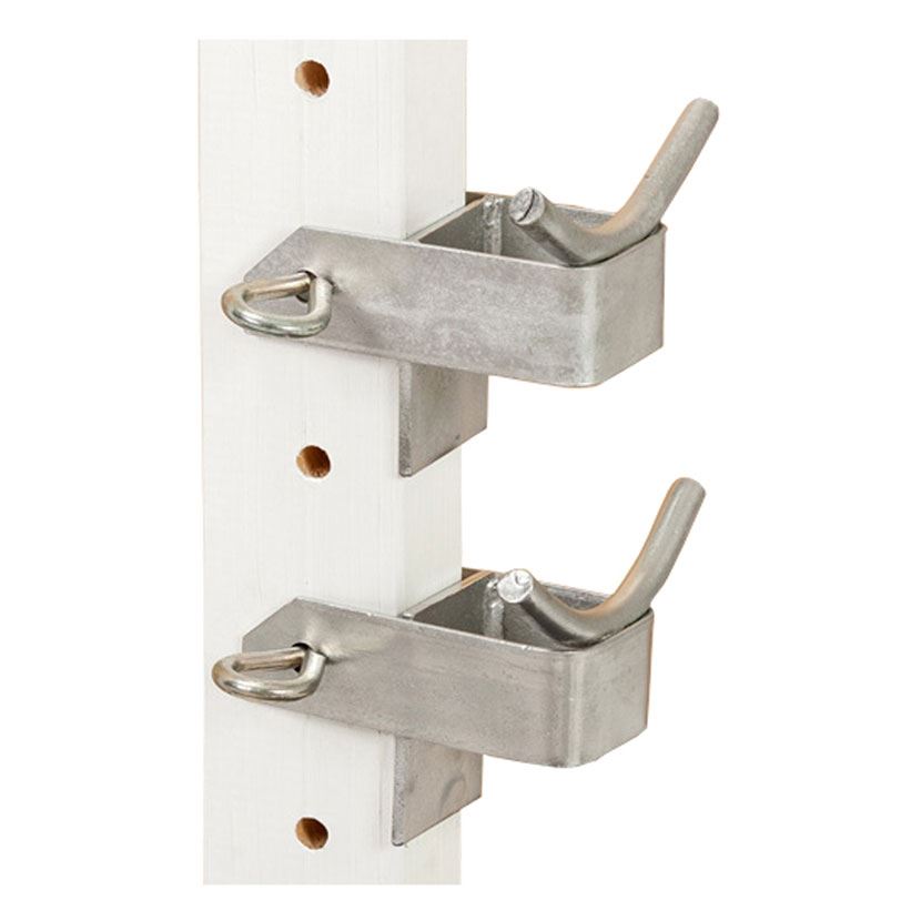 Heavy duty steel construction and finished in bright zinc plate. Suit 7cm uprights. Weight 2.38kg.