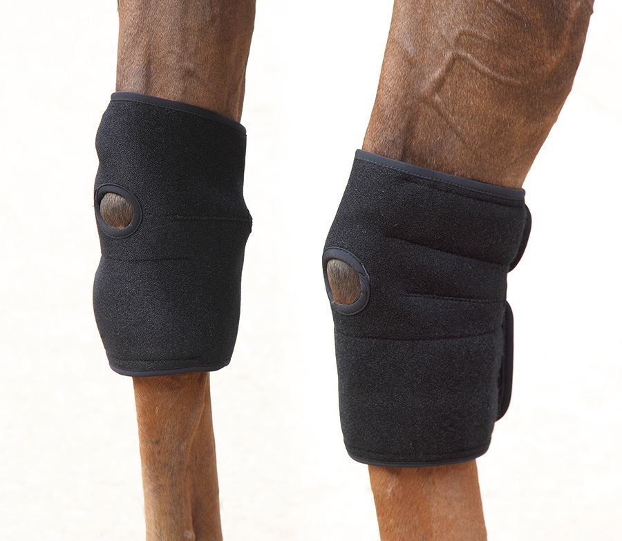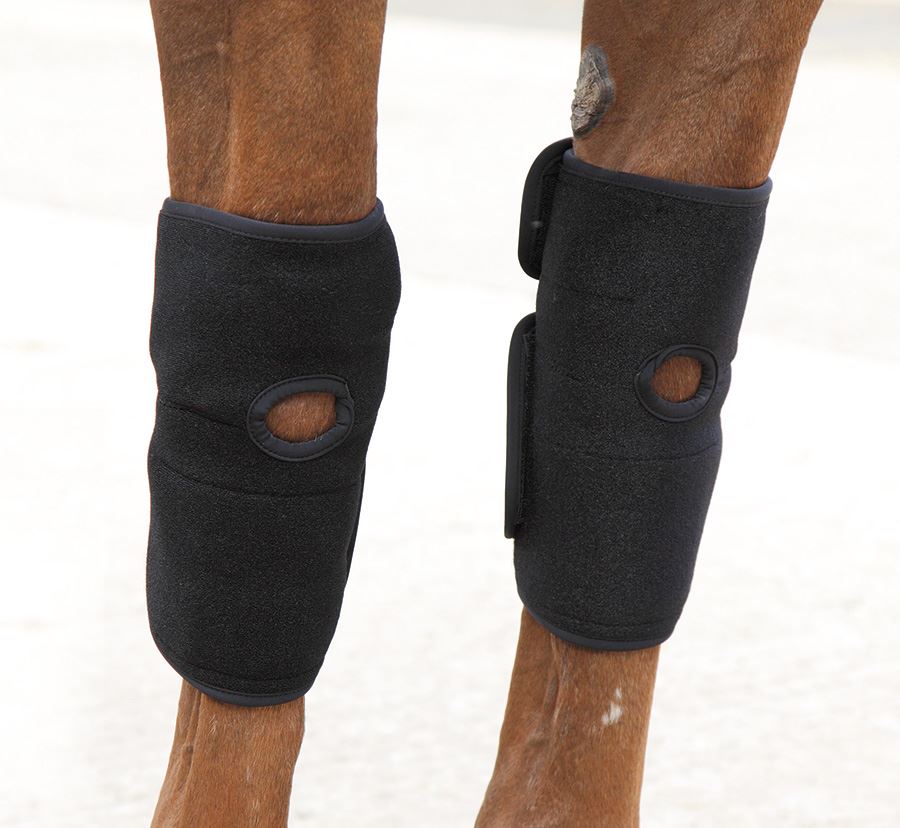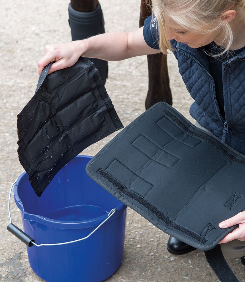 These therapeutic boots from Shires can be used hot or cold to treat injury, speed up recovery after strenuous exercise, minimize swelling and inflammation, relieve pain, relax tight muscles, encourage blood flow to assist with healing and help with arthritic conditions. Gel packs can be heated in hot water or the microwave or cooled in water or the freezer. The boot is ergonomically designed for comfort and specifically shaped to be used on joints as flexible neoprene and cut outs allow movement. Suitable for use on the knees, hocks or fetlocks. Inner pockets keep gel packs secure. See product packaging for full instructions. Sold in Pairs. Hand wash cool, do not tumble dry.