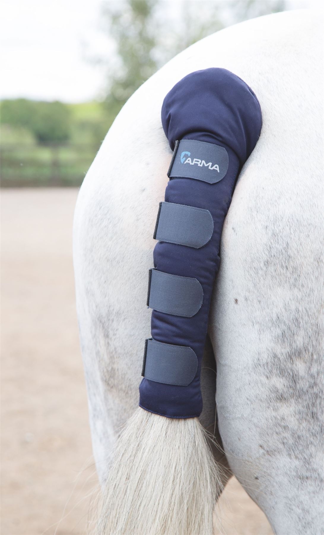 Experience the blend of comfort and protection with the Shires Padded Tail Guard designed for equine needs. Constructed from durable and easy-care nylon on the outside and padded coziness on inside, this tail guard offers a plush yet long-lasting quality. Its four touch-close straps, equipped with elastic inserts, ensure a firm and flexible fit, making it a prized choice for horse lovers. The time is now to take your horse's comfort and safety to the next level - buy now.