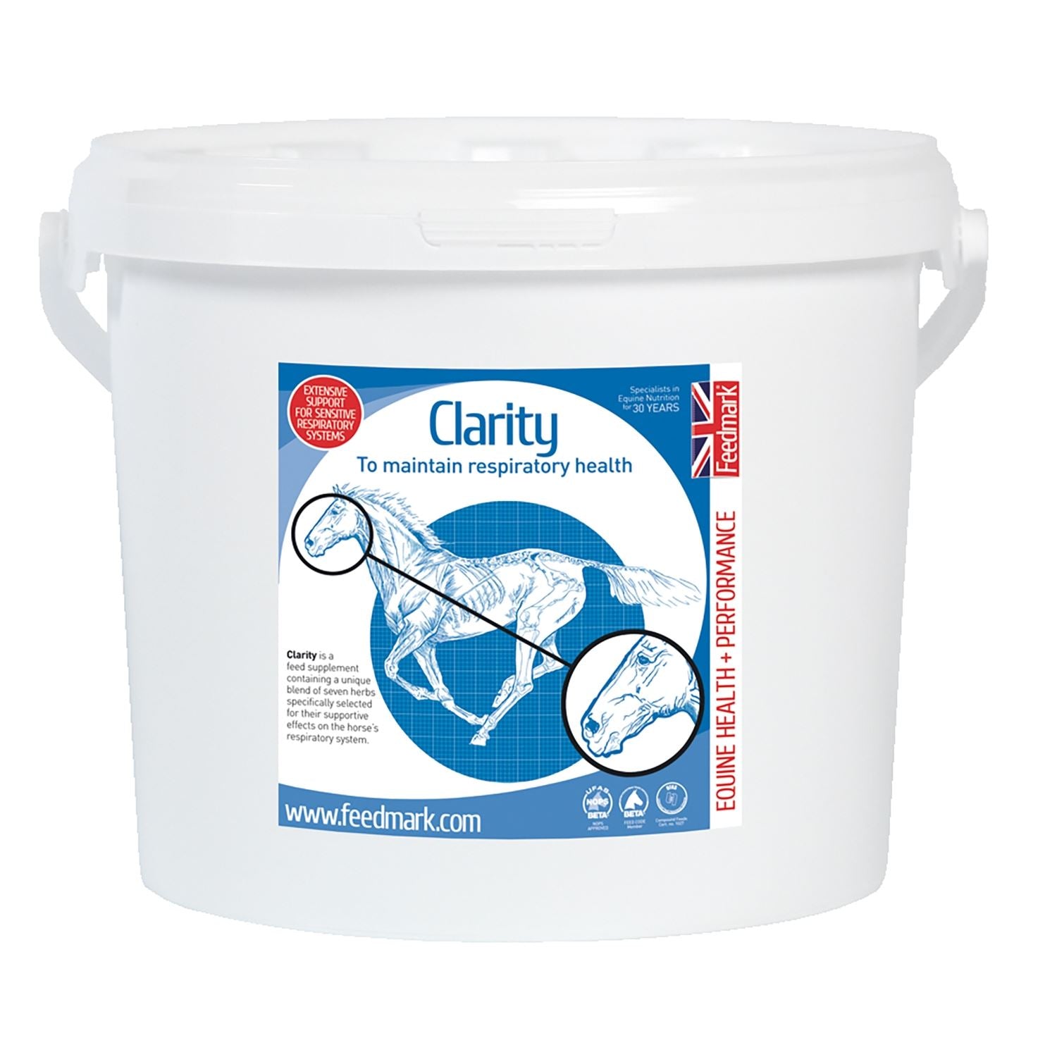 Shop now at Just Horse Riders for the Feedmark Clarity, a unique blend designed to support your horse's respiratory health. This natural formulation is specifically developed to assist horses in coping with environmental challenges, aiding in maintaining optimum lung function and overall respiratory health. It's an excellent choice for horses stabled for extended periods or those suffering from pollen issues during the summer months.