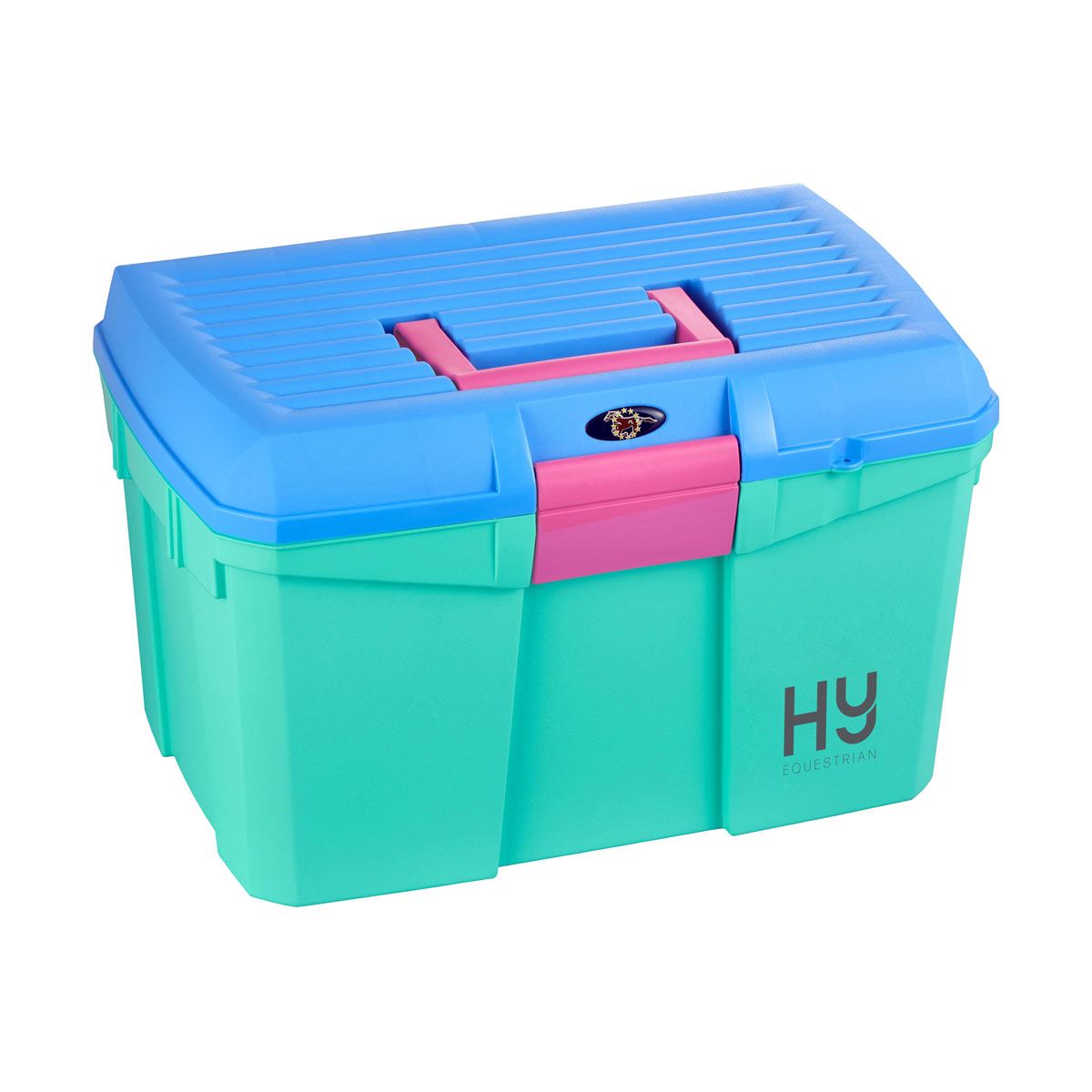 A high specification tack box suitable for all equestrian needs. Features a removable tray for convenience. A removable hoof oil brush holder ensures things stay nice and clean inside. Strong, reinforced lid can be sat or stood on. Dimensions (mm): 400x275x245(h).