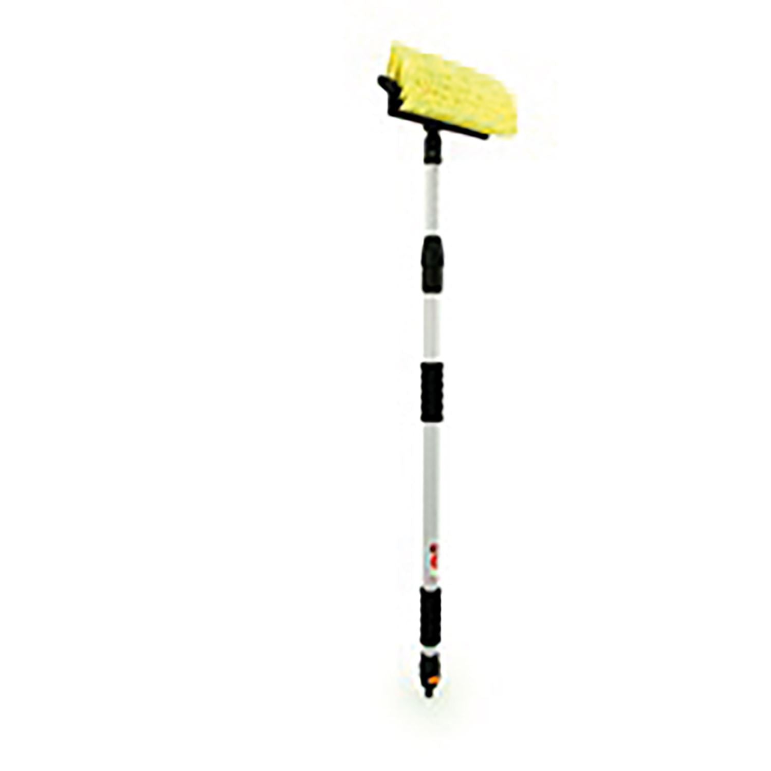 Produced from aluminium, this product is lightweight but durable and ideal for a number of tasks, fantastic for cleaning horseboxes. Extendable handle, can reach up to 74" high, with hosepipe connector and tap. EVA foam handle grips on outer pole. The 10" head has soft yellow PVC bristles which are flagged to protect surfaces from being scratched. With an on/off switch, this product is environmentally friendly by saving water when not needed.