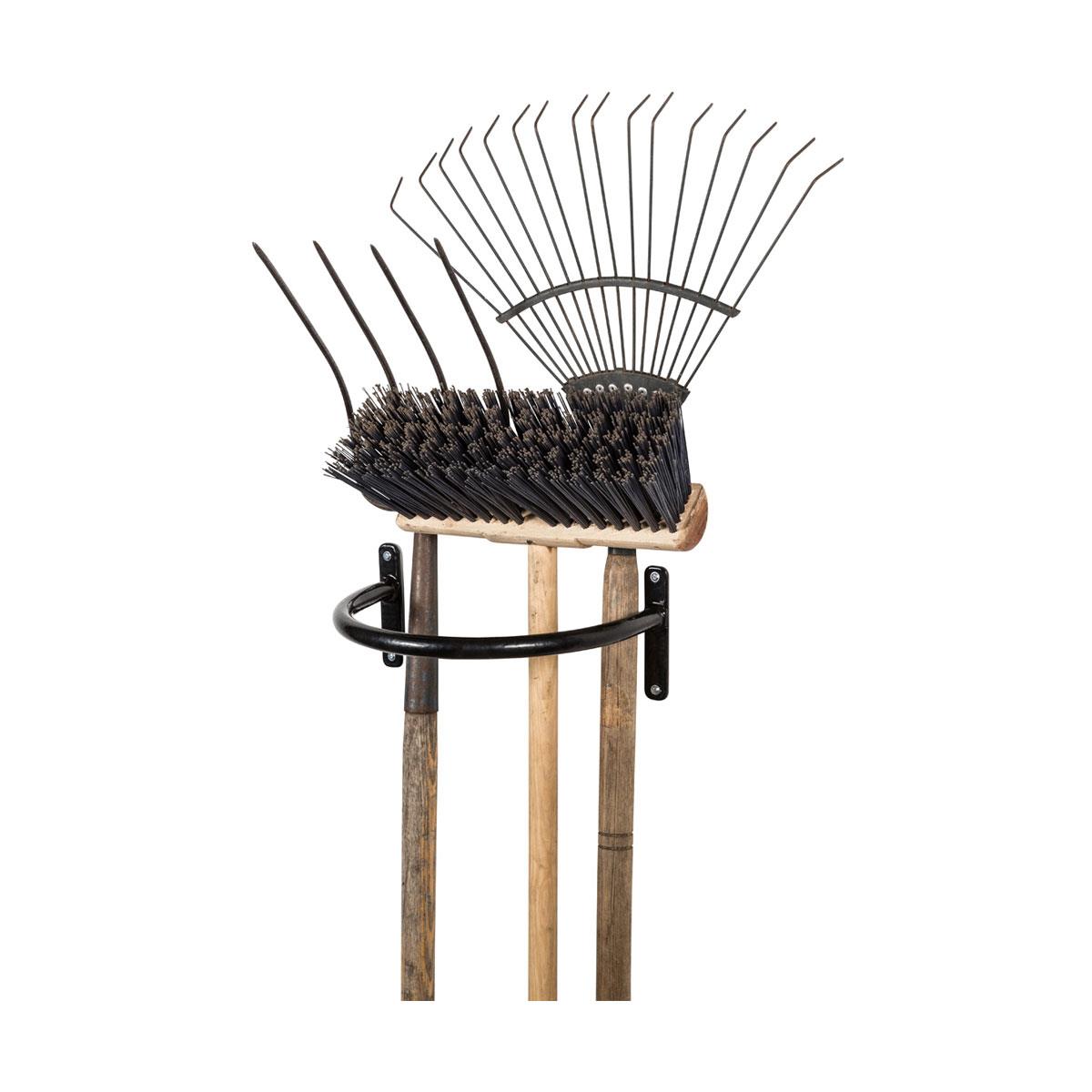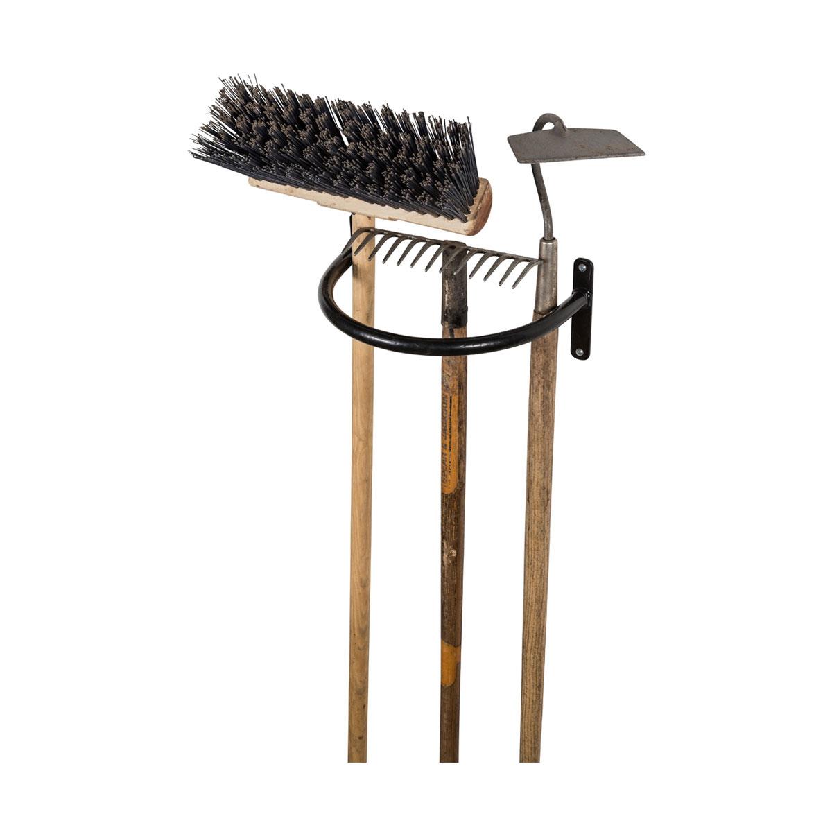 Tame all those unwieldy equestrian tools - long handled rakes, brooms and forks. They won�t monopolise the wall space or fall down, and they are still easy to extract. Equally valuable for garden tools too. Heavy duty, tubular steel frame, Black STUBBYFINE coated.