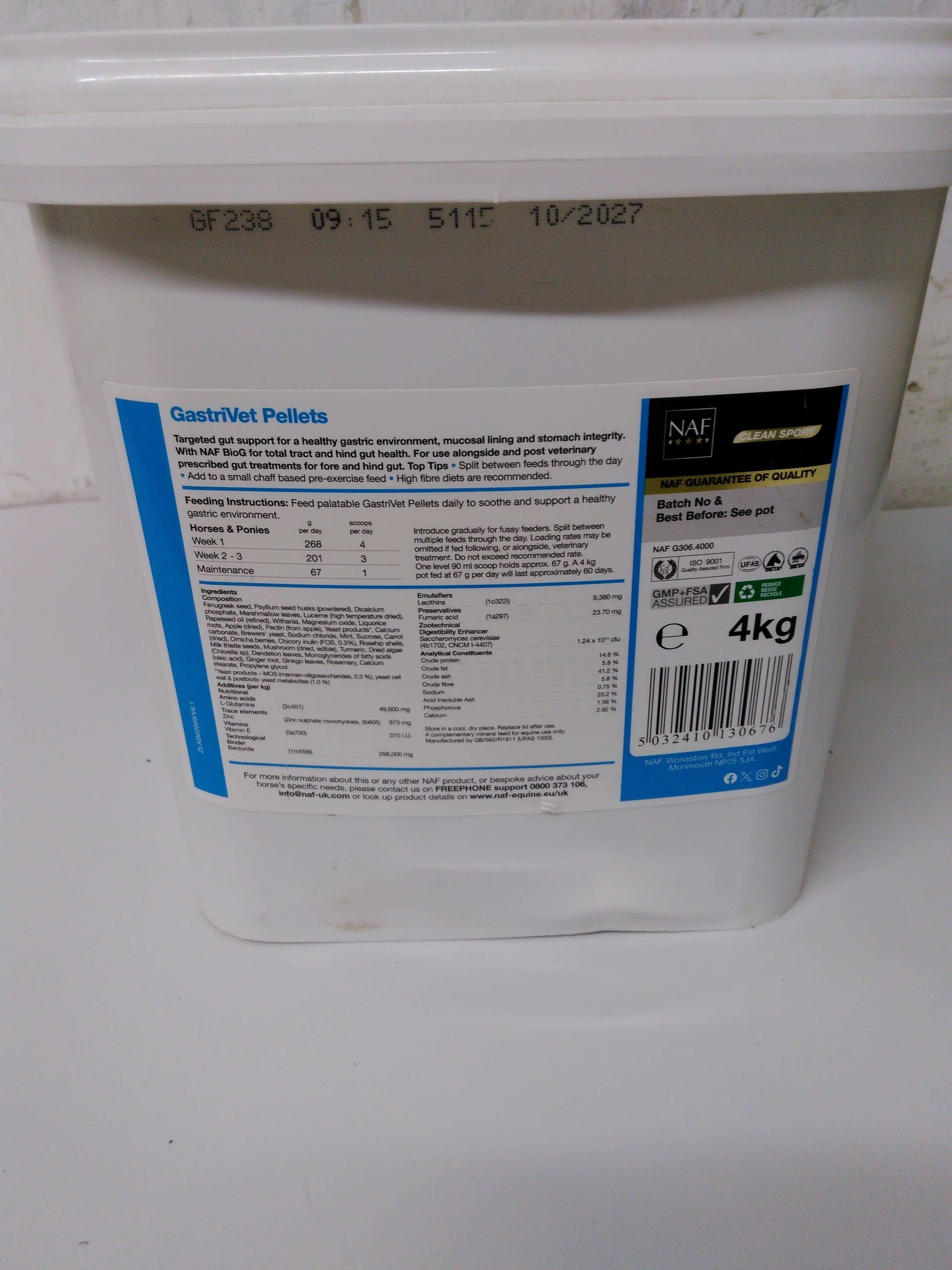 The NAF Gastrivet Pellets are specially formulated to support digestive health in horses. These pellets are designed to promote a balanced gut environment, making them ideal for horses prone to digestive issues. Despite being opened, this product retains its full weight, ensuring you receive the benefits without compromise.