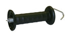 Insulated handle connection for access through electric fences. Internal extension spring to provide tension on the line.