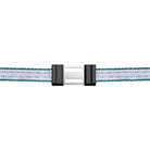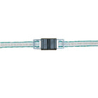 Stainless steel tape connector for tapes up to a maximum of 12.5mm. For the easy connection of two tape ends, the quick solution for repairing torn fence tapes. With special narrow, punched rectangular openings for the easy introduction and securing of the tape.