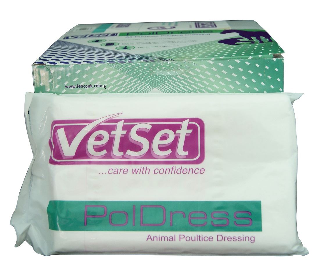 A highly absorbent, multi-layered and impregnated dressing, making it the preferred choice of many vets. Contains a mild antiseptic, boric acid, to minimise the risk of infection and promote the healing process. For maximum effect it should be impregnated with water to activate the poulticing agent which will help draw out infected wounds.