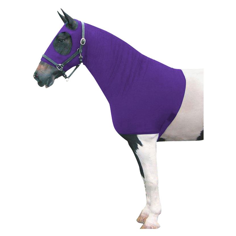 The Supreme Products Two in One is a hood and vest combined and will protect the chest area, withers and shoulder area as well as laying the coat and keeping plaits intact and pristine. This garment has a strap to be fitted through the front legs and is secured in the girth, making this an excellent garment for stabling or whilst travelling. Once fitted, the excess material in the neck should be pulled above the level of the rug to ensure ease of movement.