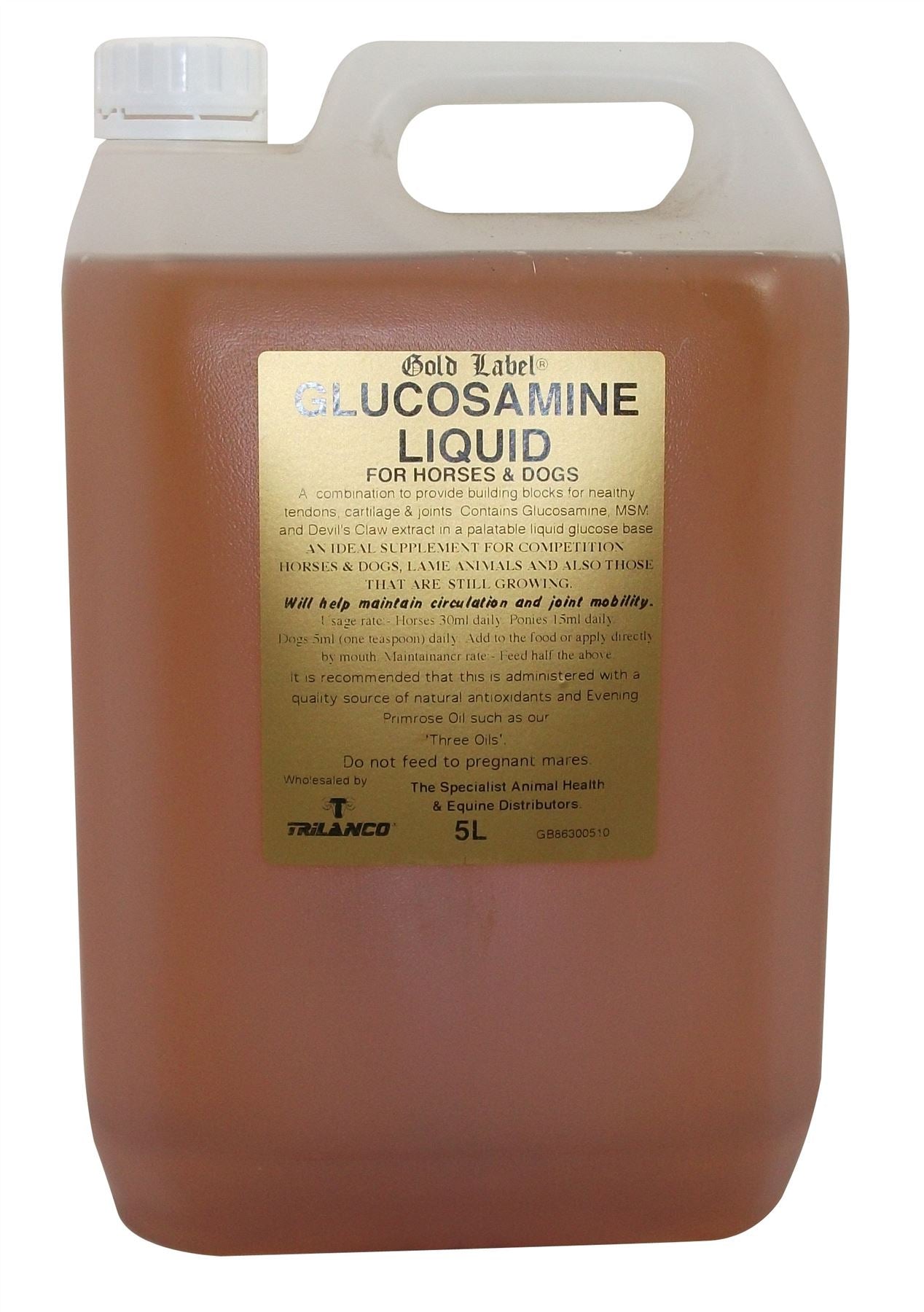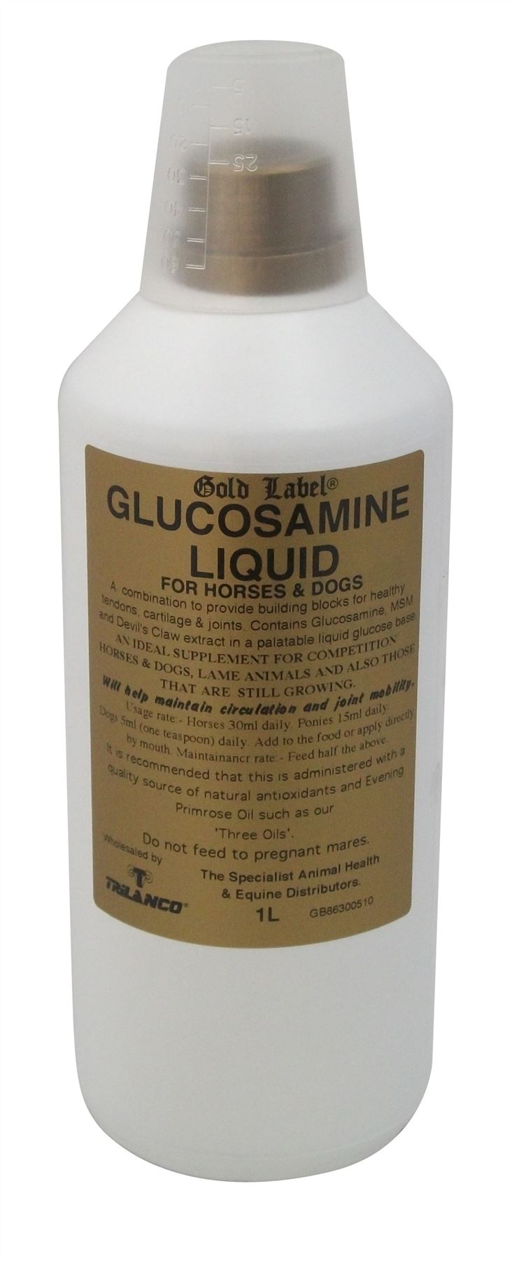 Shop now for the premium Gold Label Glucosamine Liquid at Just Horse Riders. This outstanding product is a unique blend of glucosamine, MSM, and devil's claw, expertly designed to serve as an essential building block for your horse's healthy joints and to sustain their mobility. Don't compromise on your horse's health; invest in the best.