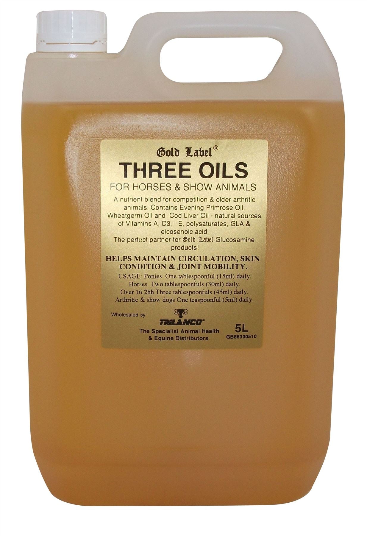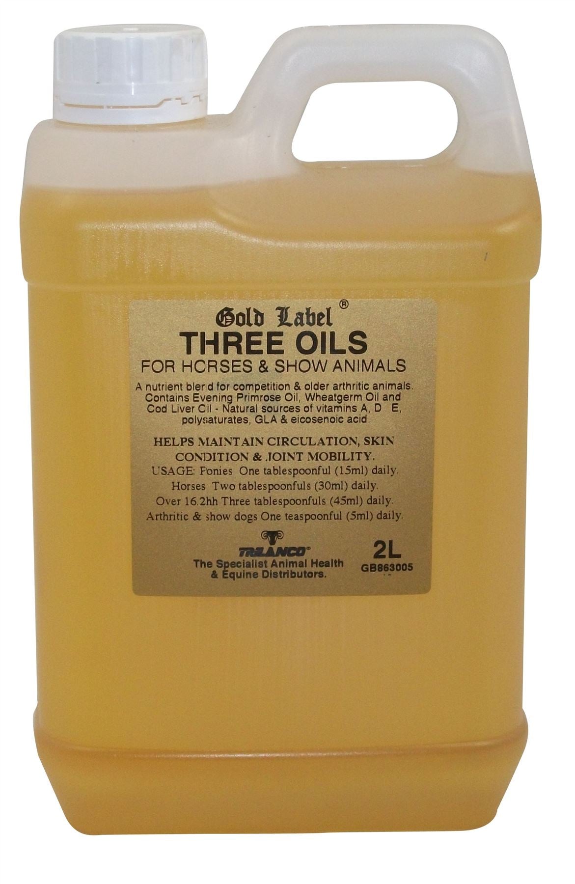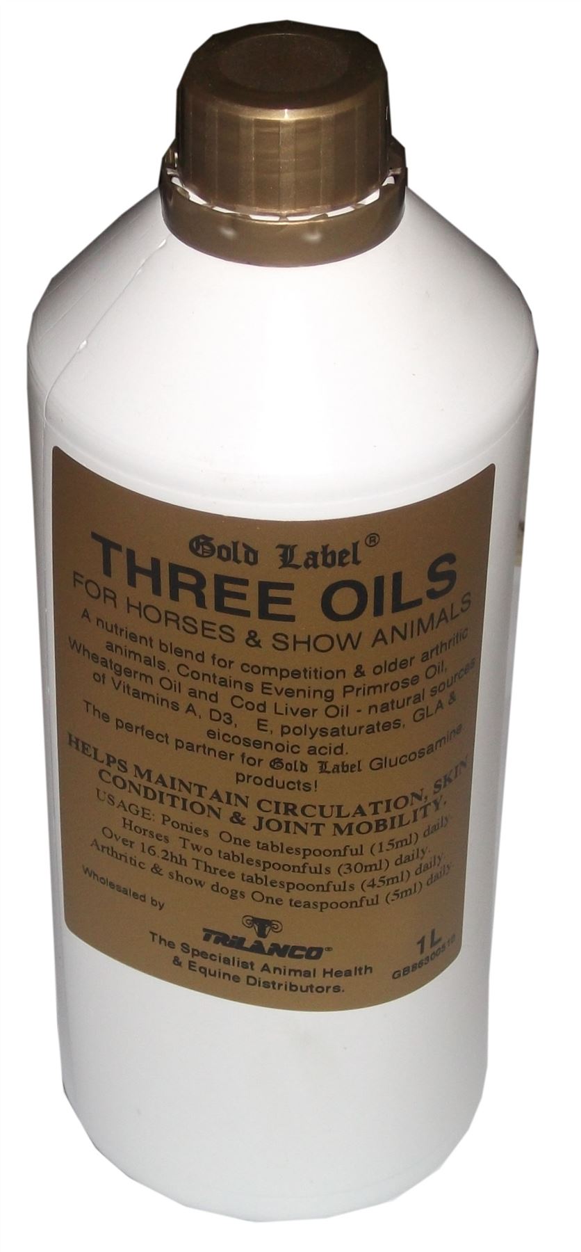 Shop now at Just Horse Riders for the Gold Label Three Oils. This scientifically balanced blend of essential natural oils is perfect for your show stock and older animals. Comprising of cod liver oil, evening primrose oil, and wheatgerm oil, this blend is expertly crafted to maintain healthy joints in your beloved equestrian companions.