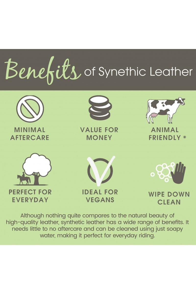 Although nothing quite compares to the natural beauty of high-quality leather, synthetic leather has a wide range of benefits. It needs little to no aftercare and can be cleaned using just soapy water, making it perfect for everyday riding.
