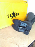 The Saxon Syntovia Tall Field Boots in Black are designed for comfort and style, perfect for both riding and everyday wear. These brand new boots feature a sleek silhouette and durable materials, ensuring longevity and performance. Although the box is damaged, the boots themselves remain in pristine condition, ready to enhance your equestrian wardrobe.