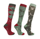 These fabulous socks are made from a soft, stretchy material with added bamboo which is known for its antibacterial properties, the fabric will wick away moisture do your feet and lower legs stay warm and dry. With a padded sole for that extra comfort and long leg design, these are perfect to customise your outfit! The first features a classic argyle pattern with stag and deer throughout. The second is a beautiful moss colour with repeat antler and stag patterns. The third is thyme green, with the repeated stag head, deer and antler pattern. All with coordinating heel and toe.