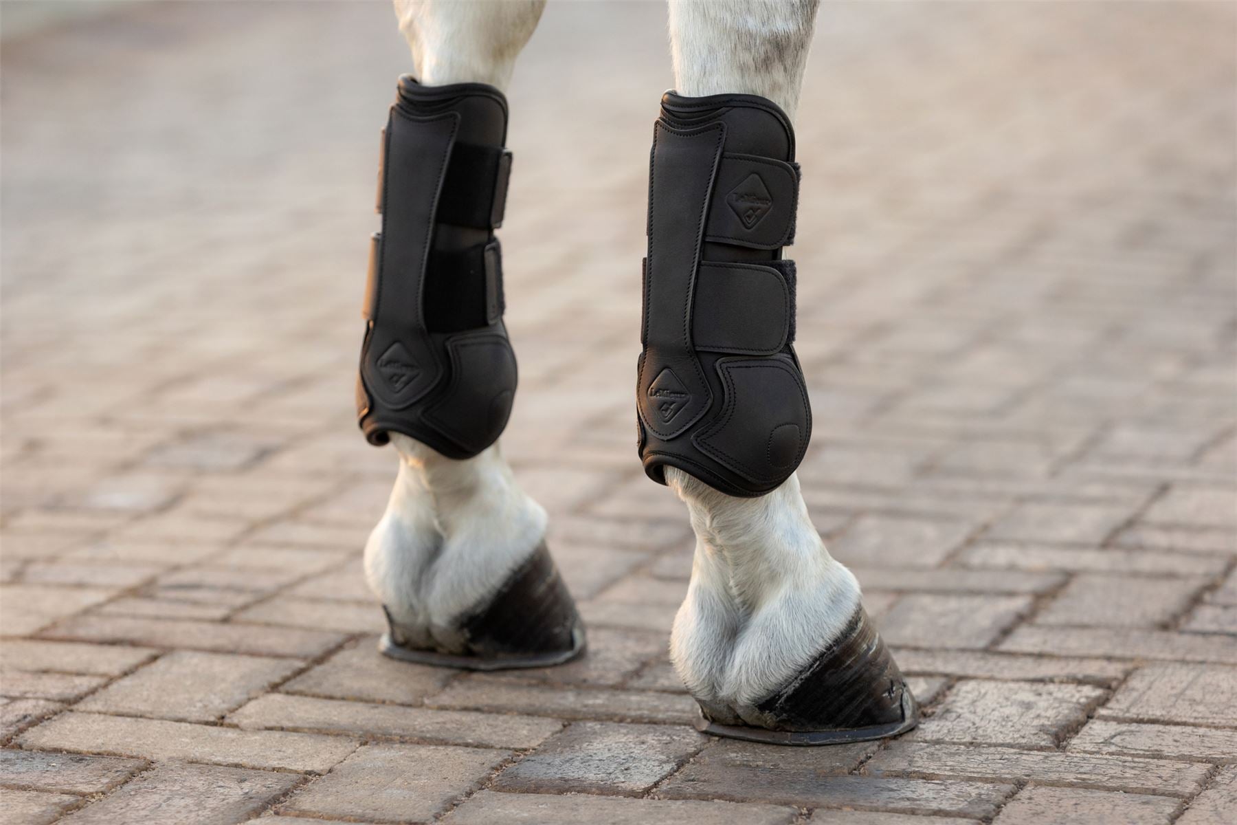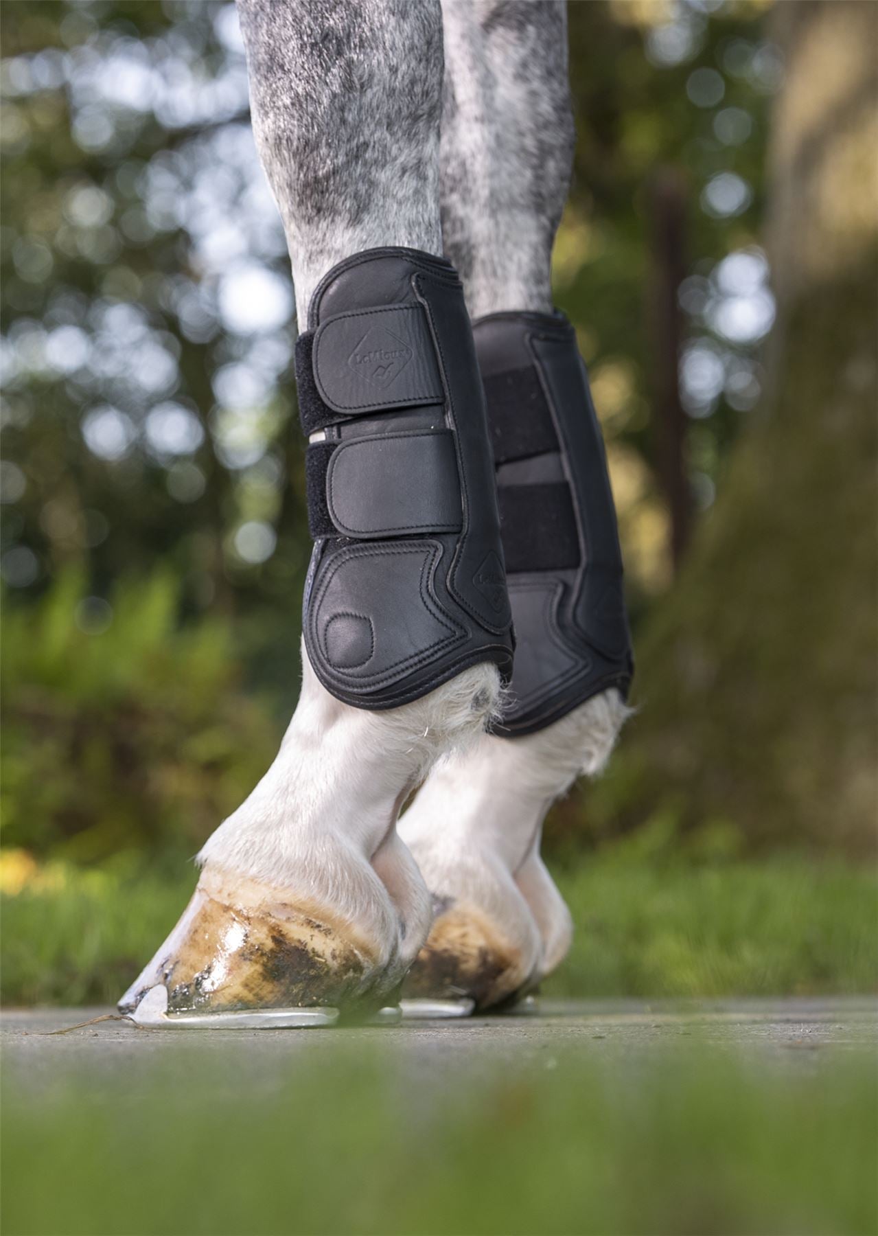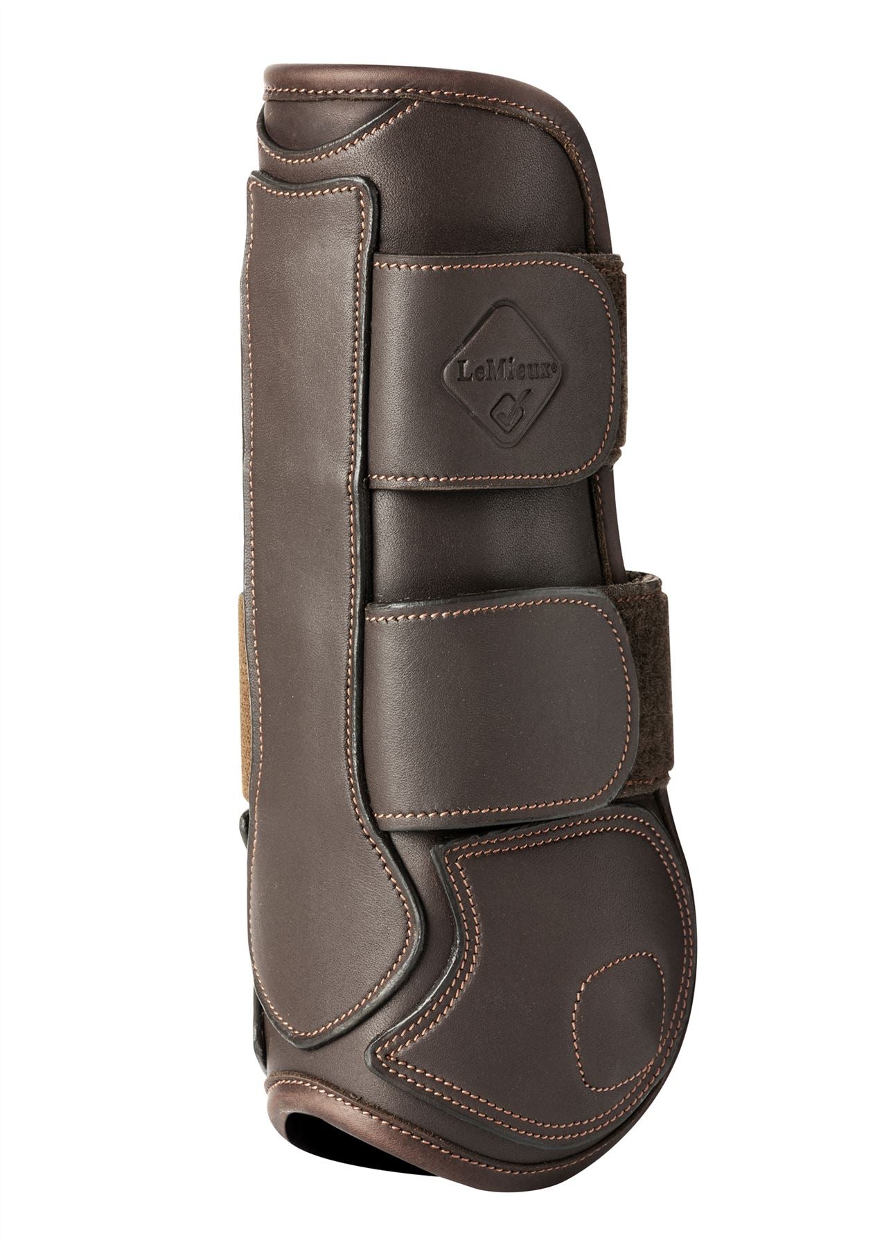 Classical style with cutting edge protection. These leather tendon boots are made from top-quality soft leather that moulds beautifully to the leg. The stitching detail defines the key anatomic sections whilst the soft contoured top is cut back to allow no restriction on the tendon when jumping. Designed with low friction EVA lining, these boots give style, performance and function. Double lock hook & loop straps ensure the perfect fit and adjustability. Sold in pairs. Individual boot weight = max 270g