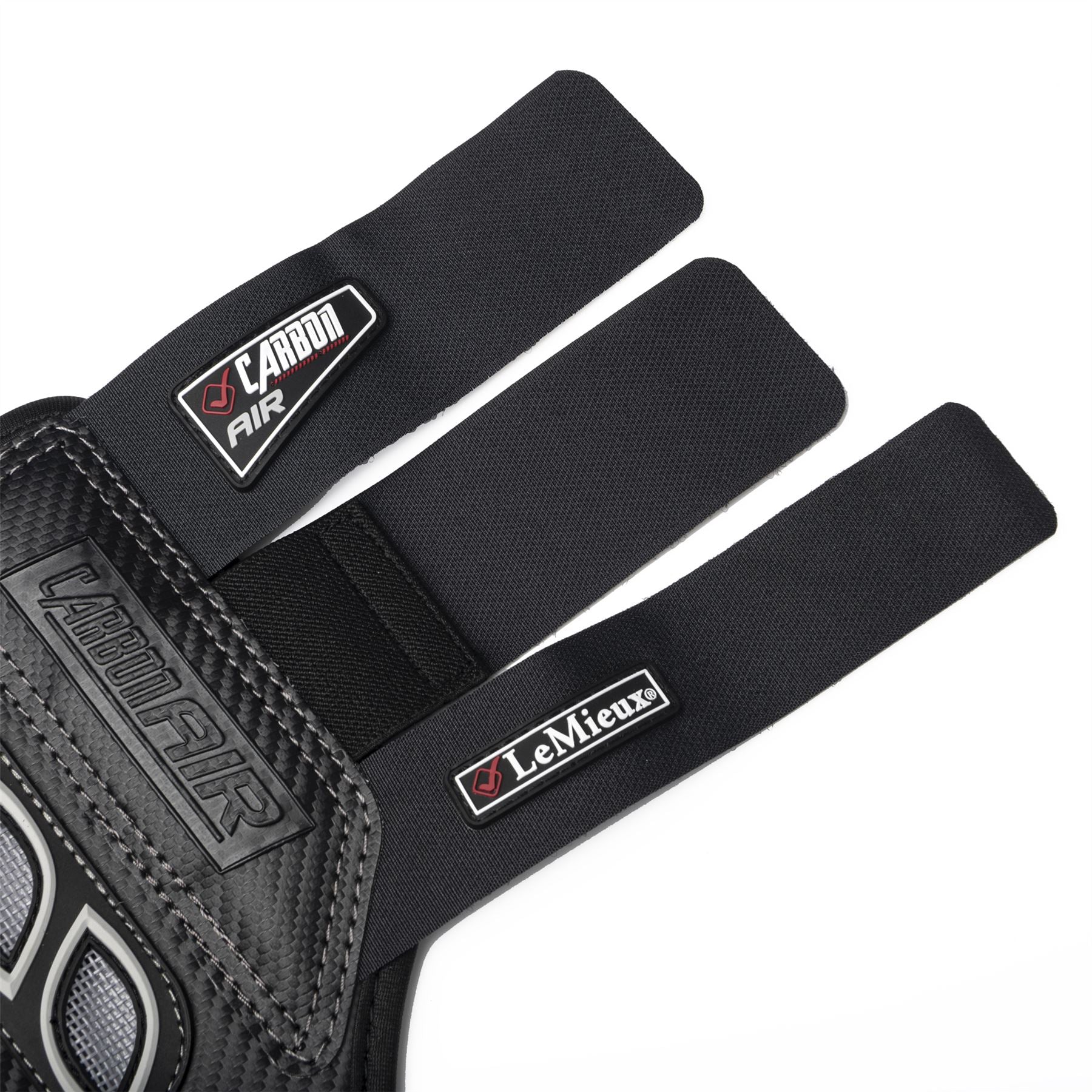 The new LeMieux Carbon Air brings the latest in protection design with a smart and durable XC boot. These fully vented XC boots allow air to strategically flow through the boot to keep tendons cool. Cutting edge shock absorption and tendon support with a flexible polycarbonate strike guard give these boots superior protection to prevent injury while still keeping a super lightweight profile. The close fit new perforated EVA lining is ultra soft and non-slip with elasticated central locking strap keeps the boot securely in place. These boots are perfect to withstand the rigour of cross country and can also be used as tough everyday work boots. Sold in pairs. Individual boot weight = max 202g